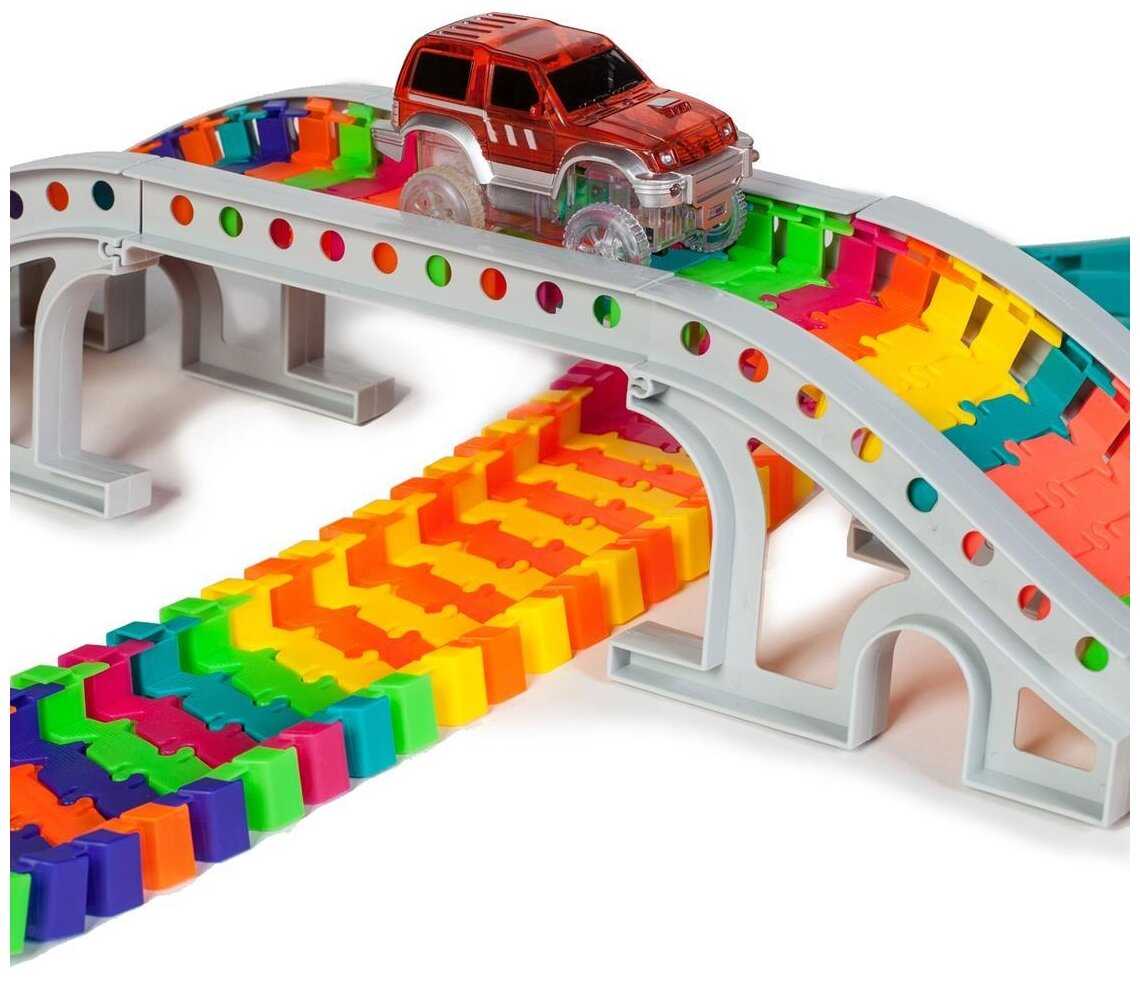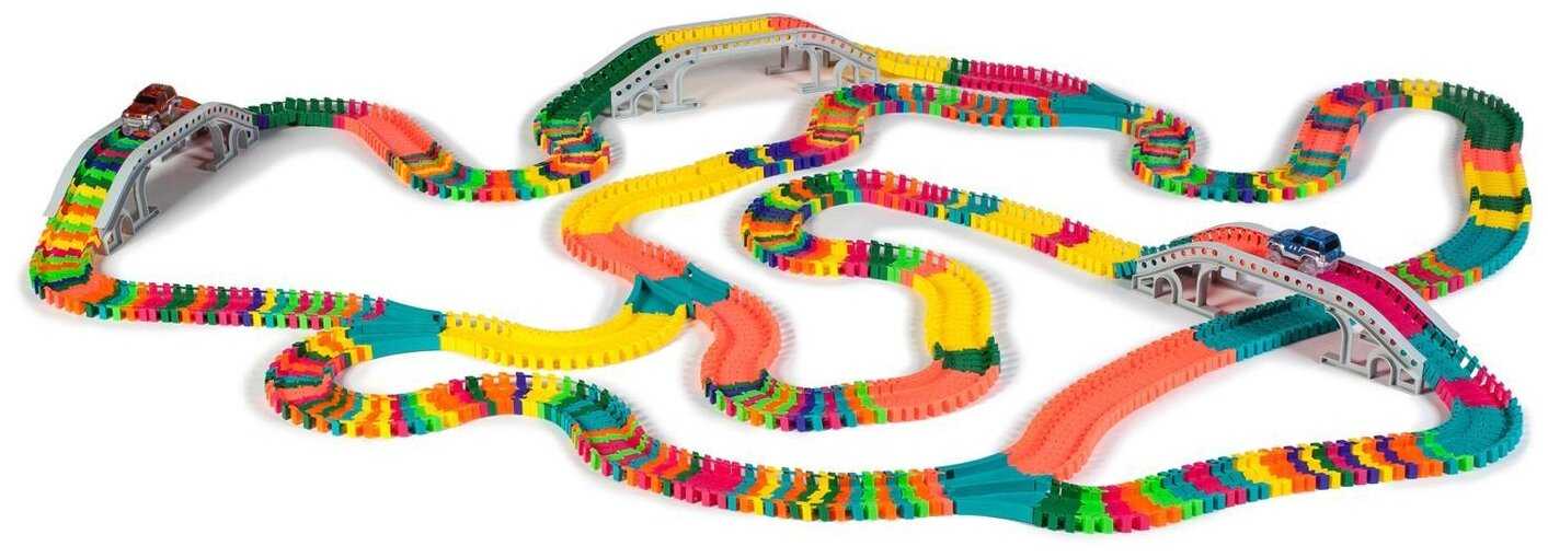отличный трек, купила 3 набора, собирается огромная дорога. все крепко, чётко. ребенок доволен, сам собирает разбирает