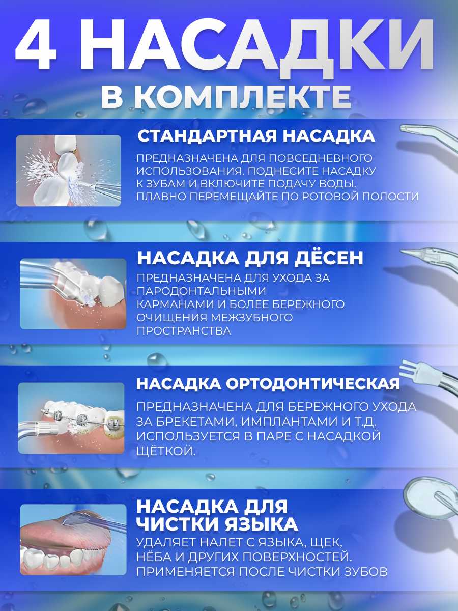 - Идеален для чистки имплантов и брекет-систем, как отмечают пользователи с протезами.