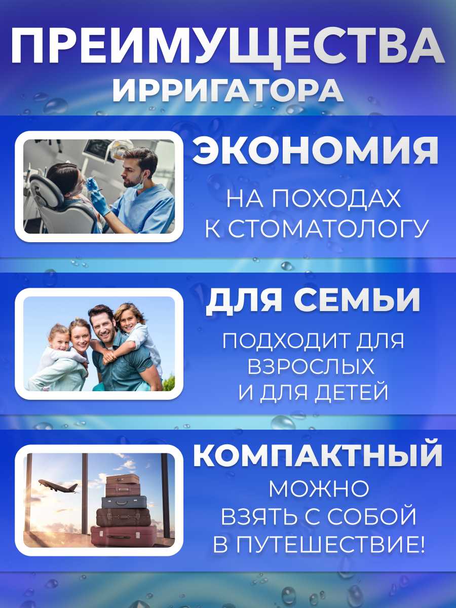 Устройство оптимально для детей 8–12 лет: слабый напор безопасен, а компактный размер удобен для маленьких рук. Родители используют его для чистки пластин или временных конструкций, где не требуется интенсивное воздействие. Взрослые выбирают модель как «пробный» вариант для знакомства с ирригаторами — низкая цена снижает риски, но разочаровывает тех, кто ожидает клинического эффекта. Также прибор подходит для поездок благодаря портативности, однако частые доливы воды и риск поломки делают его неидеальным спутником. Для людей с чувствительными дёснами он может быть полезен, но лишь при поверхностной очистке, не заменяя профессиональных устройств.