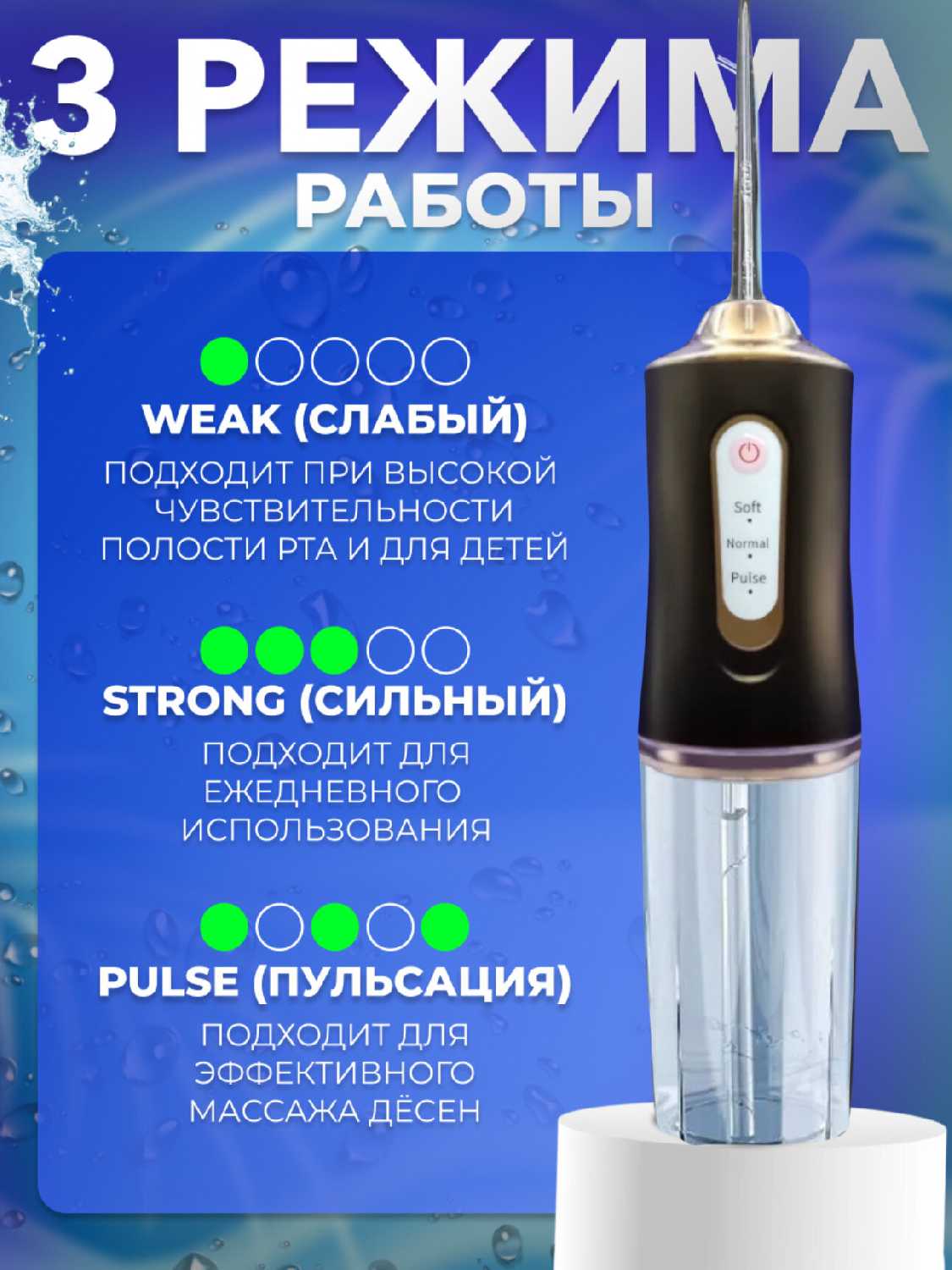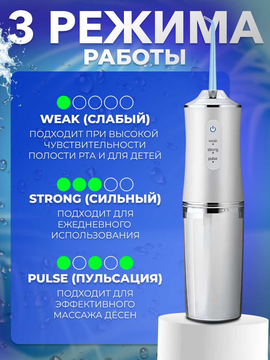 Заявленные режимы (например, мягкий, интенсивный) частично выполняют свои функции: пользователи с чувствительными деснами довольны щадящей очисткой. Однако те, кто ожидал регулируемый напор, разочарованы — разница между режимами часто неочевидна, а максимальная мощность недостаточна.