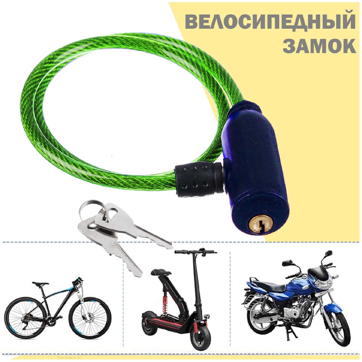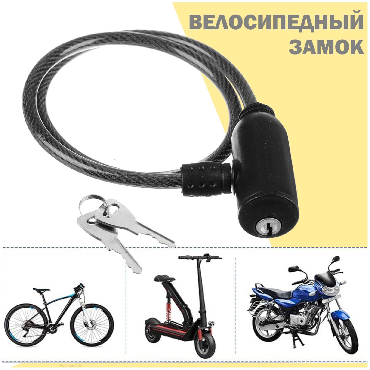 Хороший маленький замок, хватит для того чтобы пристегнуть велосипед пока ходите в магазин. Мне нравится не смотря на запах пластика