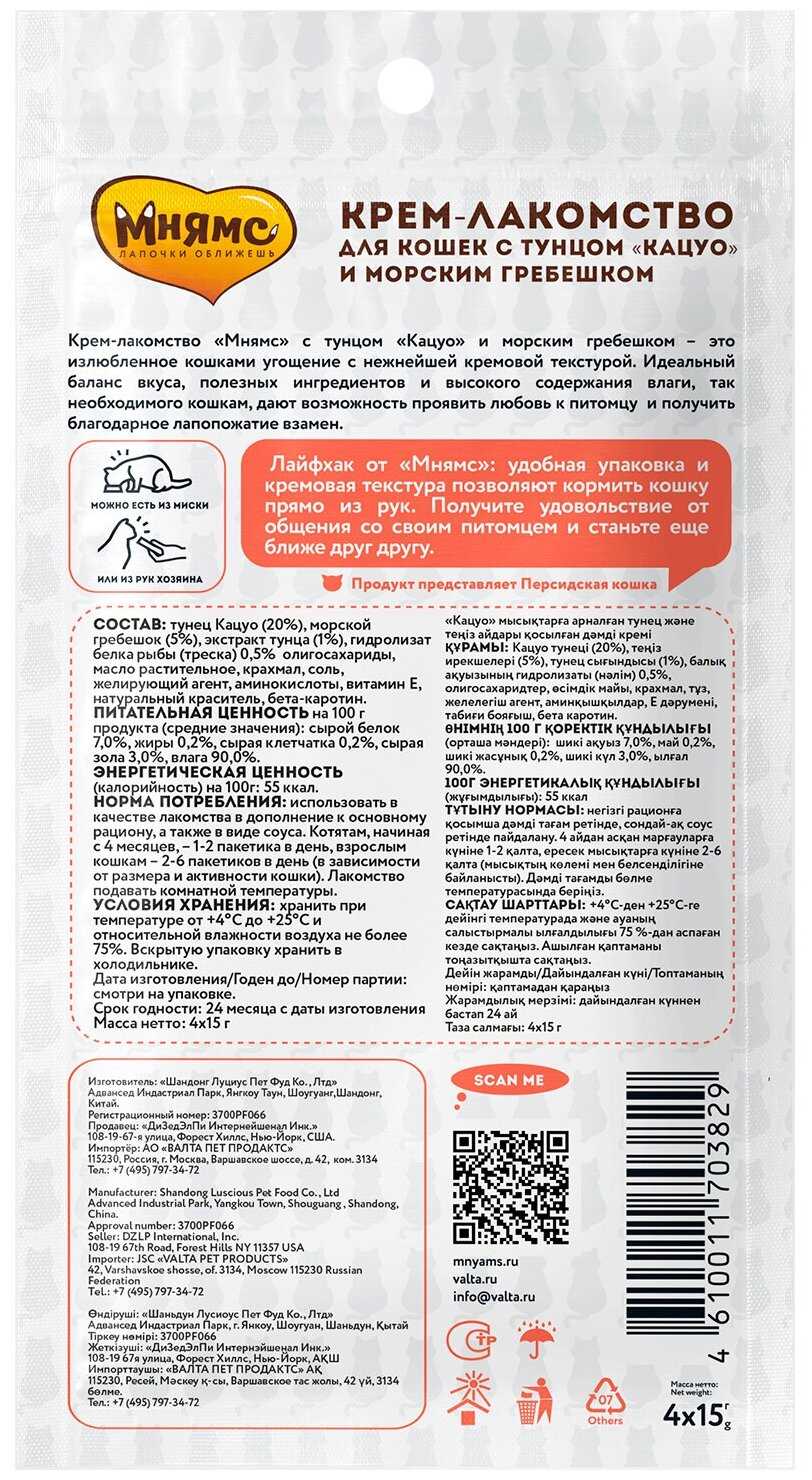 Отзывы о Крем-лакомство Мнямс для кошек с уткой и тунцом Кацуо