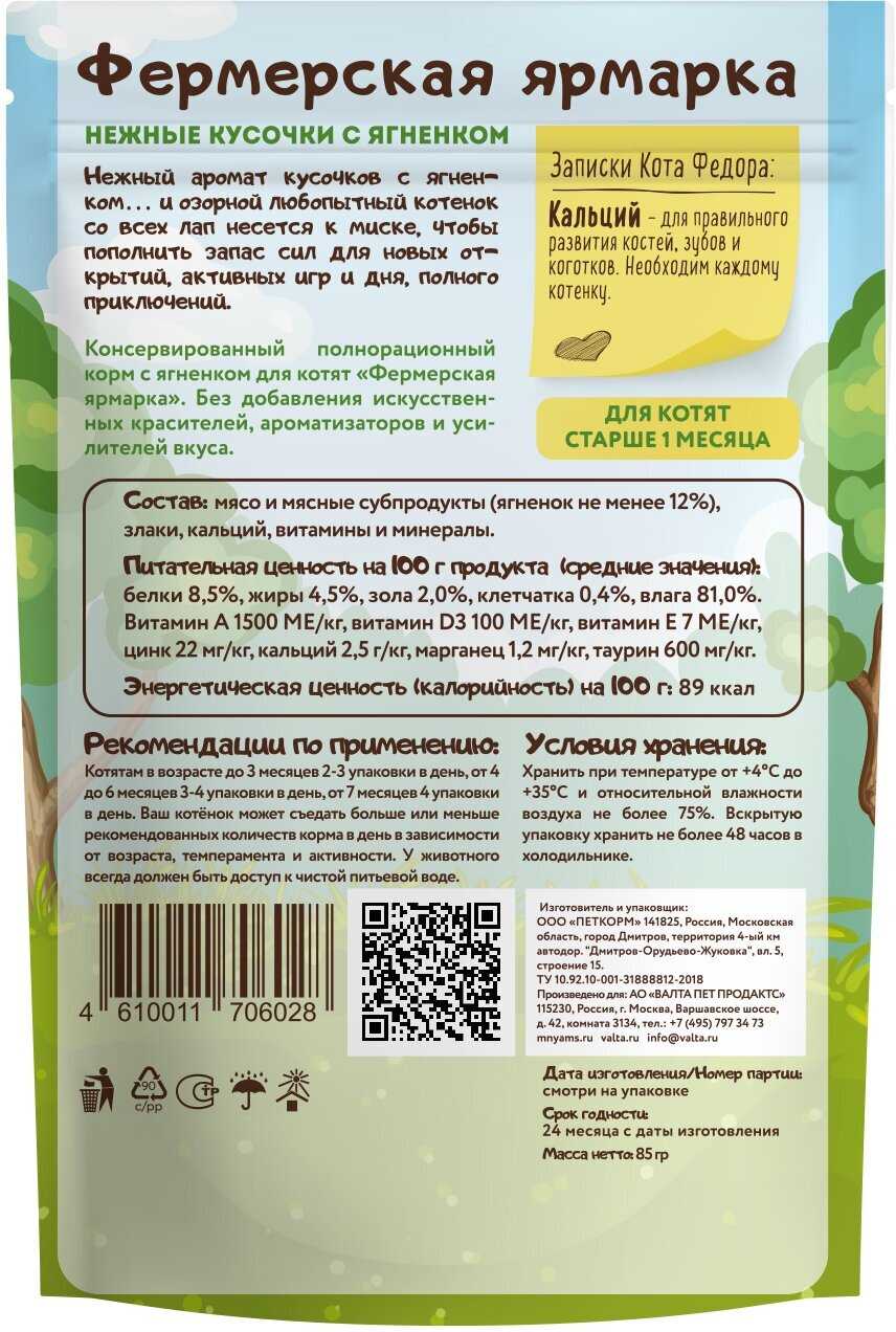Характеристи Мнямс Кот Федор рекомендует Фермерская ярмарка