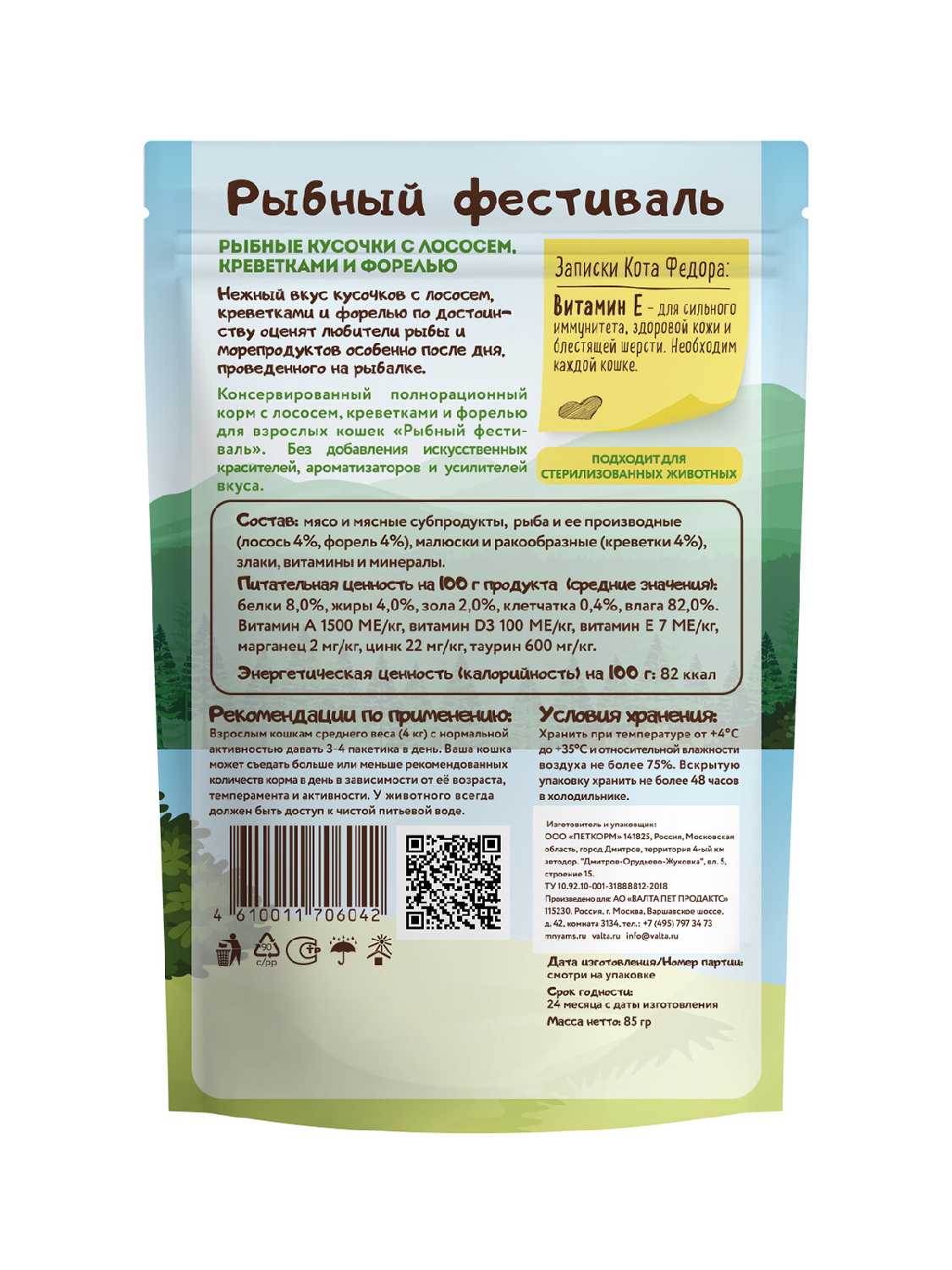 Отзывы о Корм для кошек Мнямс Кот Федор рекомендует Рыбный фестиваль (кусочки в соусе)