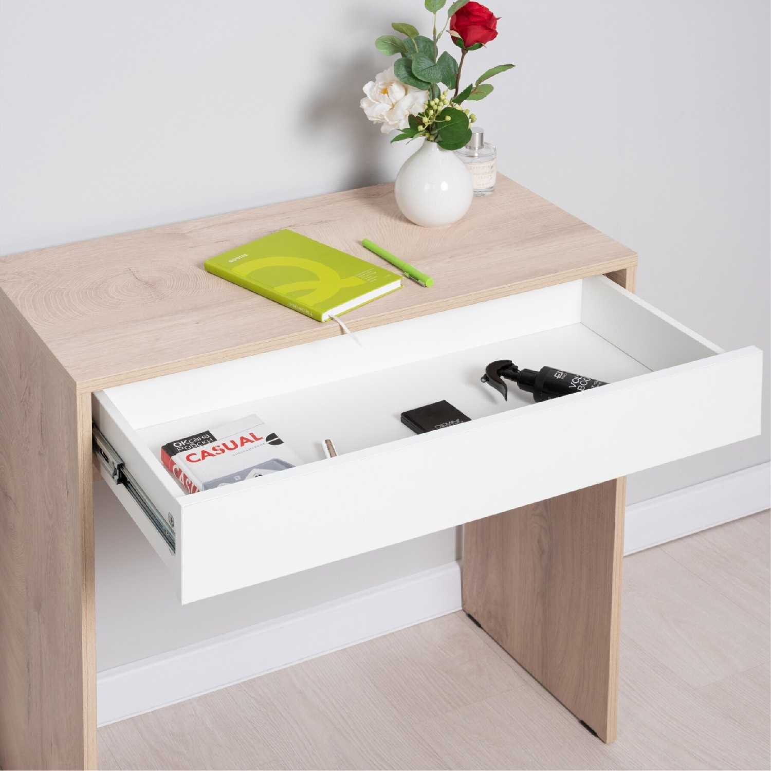 - + Красивый современный стол, покупала сразу 2 на балкон для цветов. Очень хорошо что есть ящик для хранения. А габариты вообще суперские.