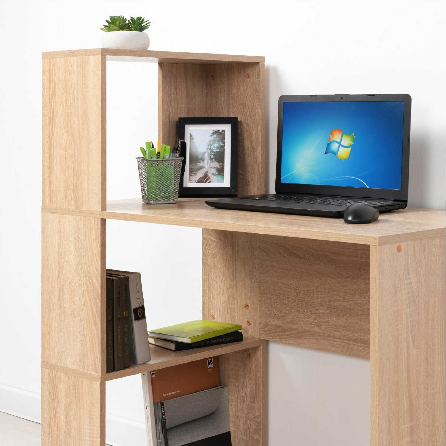 стол с широкой рабочей зоной и удобными полками.