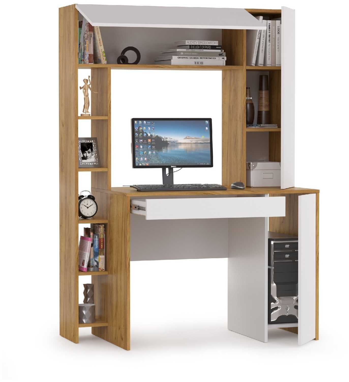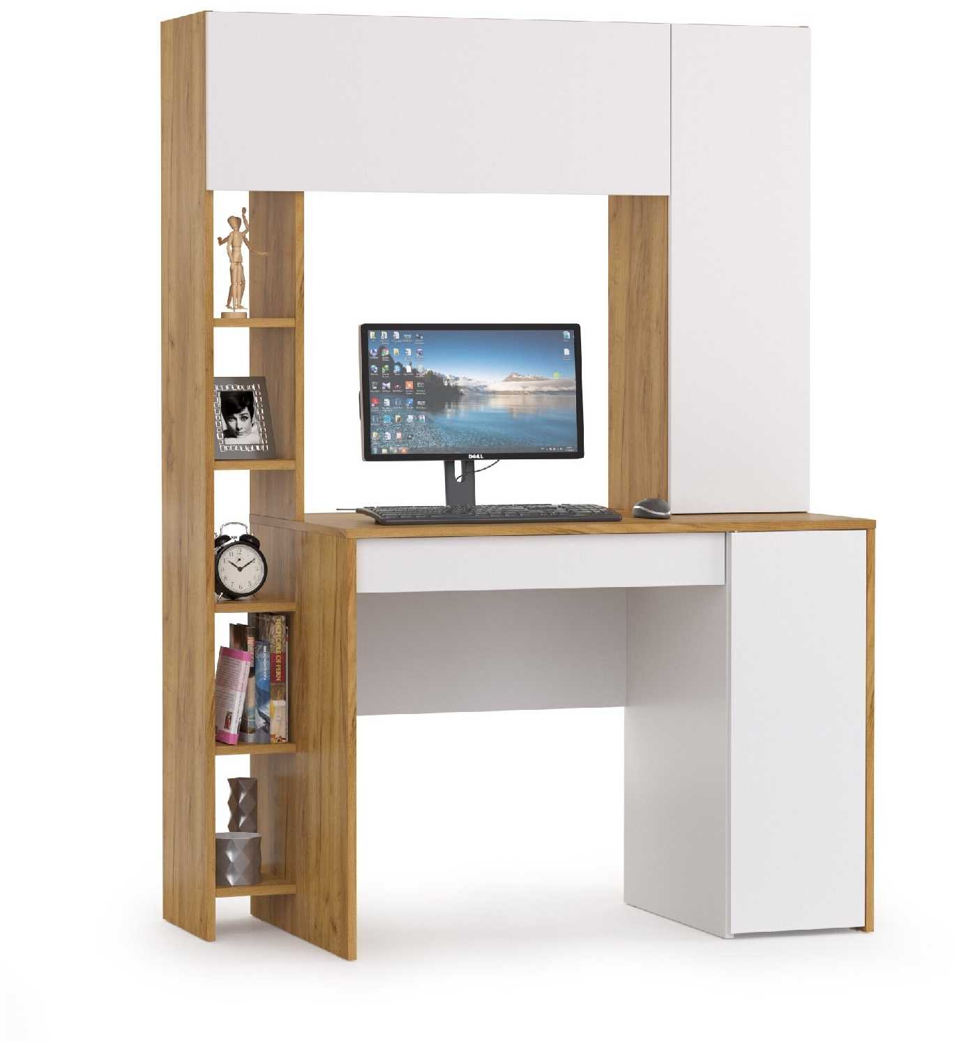 - - Не обнаружил. От себя добавил бы дверцу на правую сторону с полочками. Ну и думаю всё таки там где полочки открытые с задней стороны закрыть пространство, что бы не заваливались случайно вещи, которые там будут лежать. (это если стол не в плотную к стене стоит).