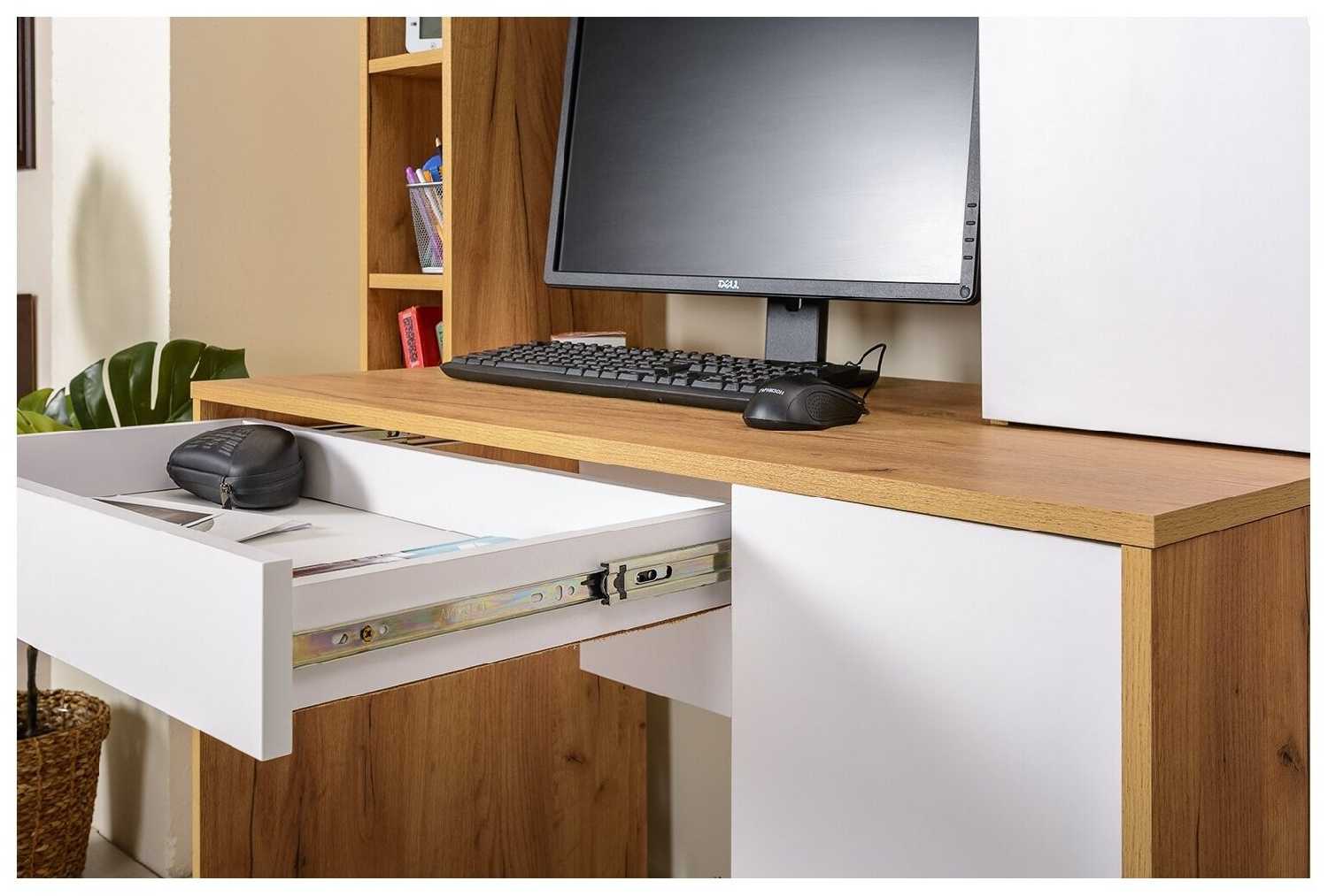- Компактные габариты сочетаются с вместительностью: даже на небольшой площади стол предоставляет достаточно места для хранения учебников, тетрадей и техники.