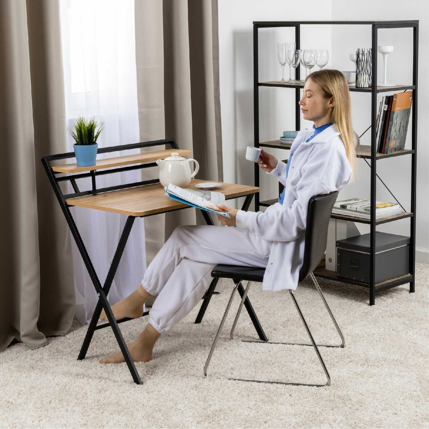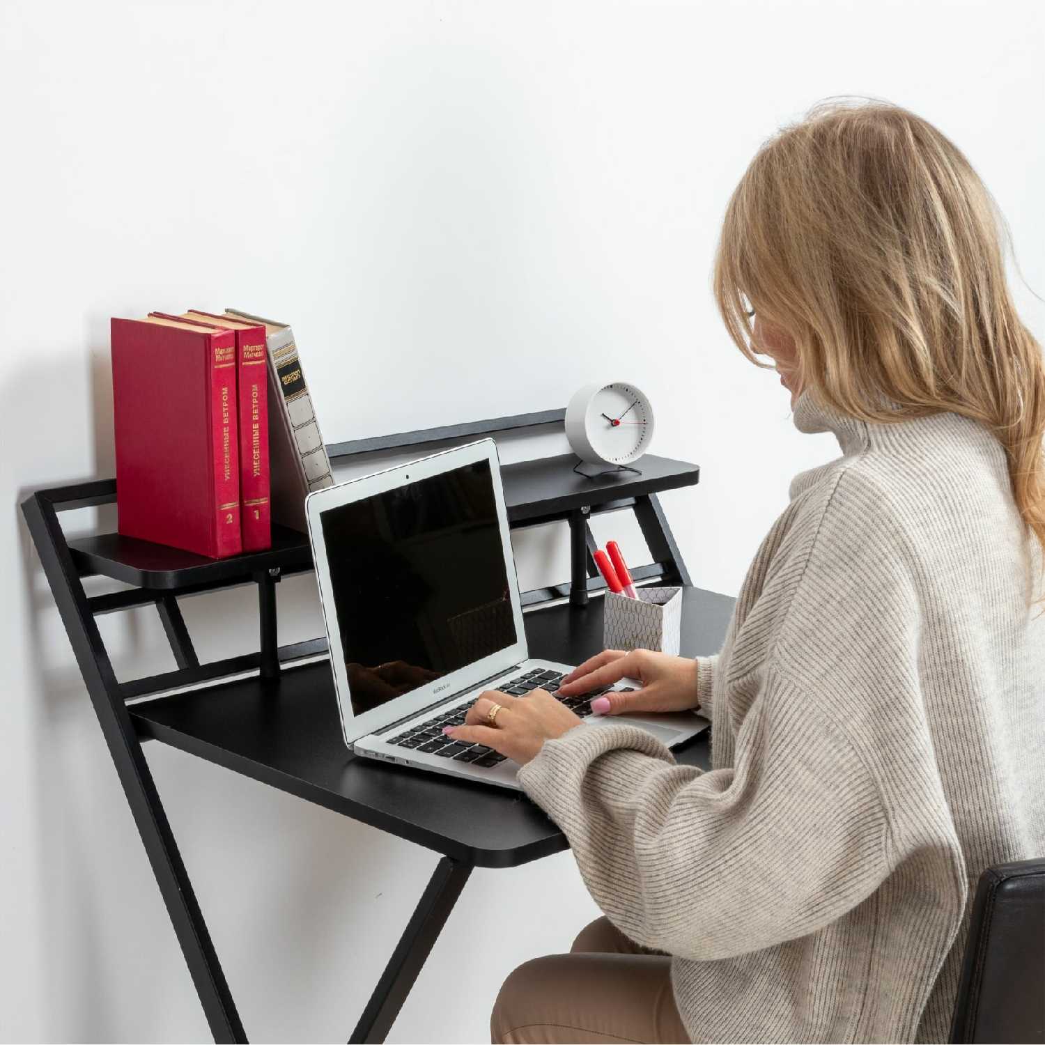 Очень удобный стол. Легко собирается. Шикарная упаковка. Чтобы случайно не сложился закрепила пластиковой стяжкой, т. к на полочку поставила 2 монитора и есть шанс, что случайно стол сложится