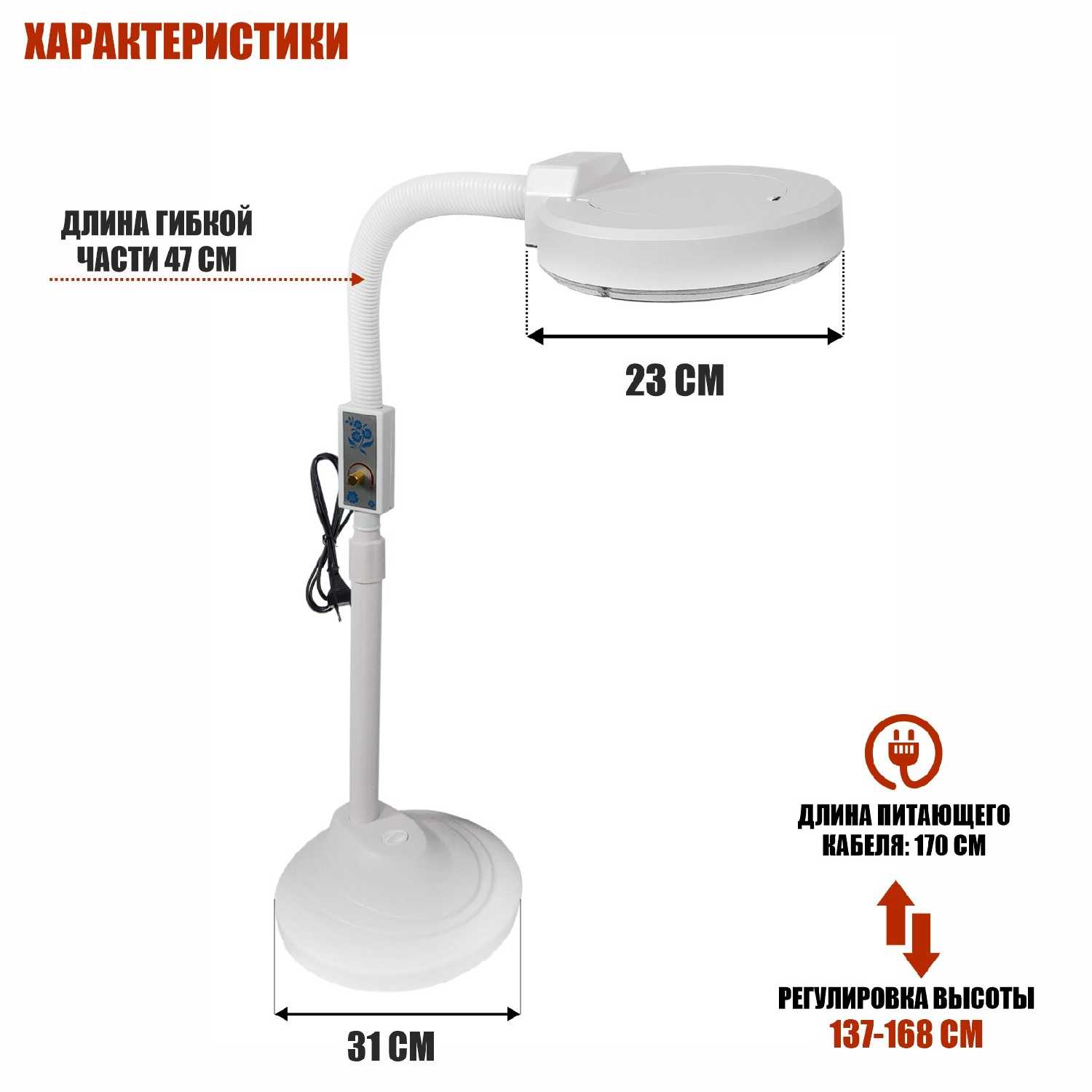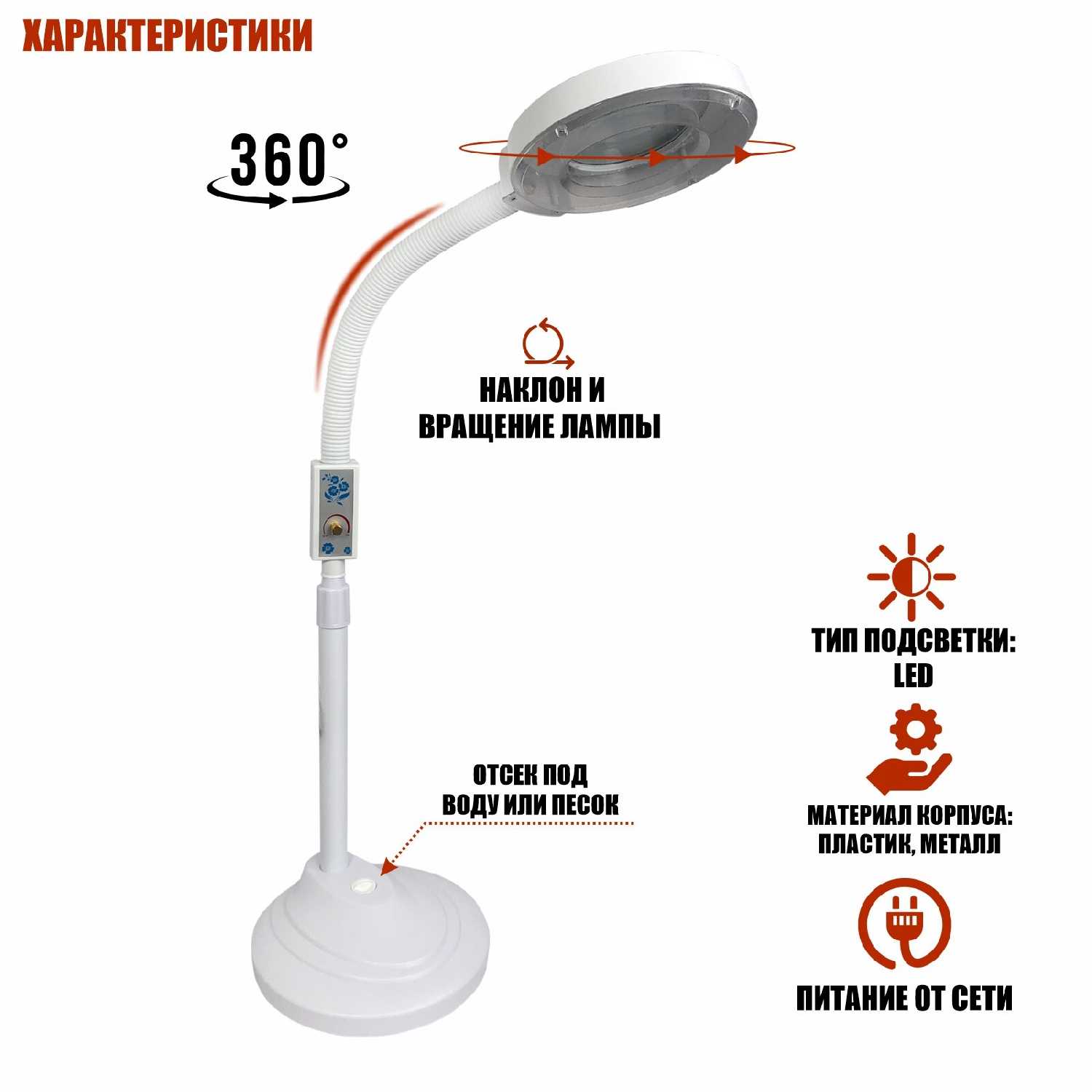 Конструкция : | лупа-лампа |