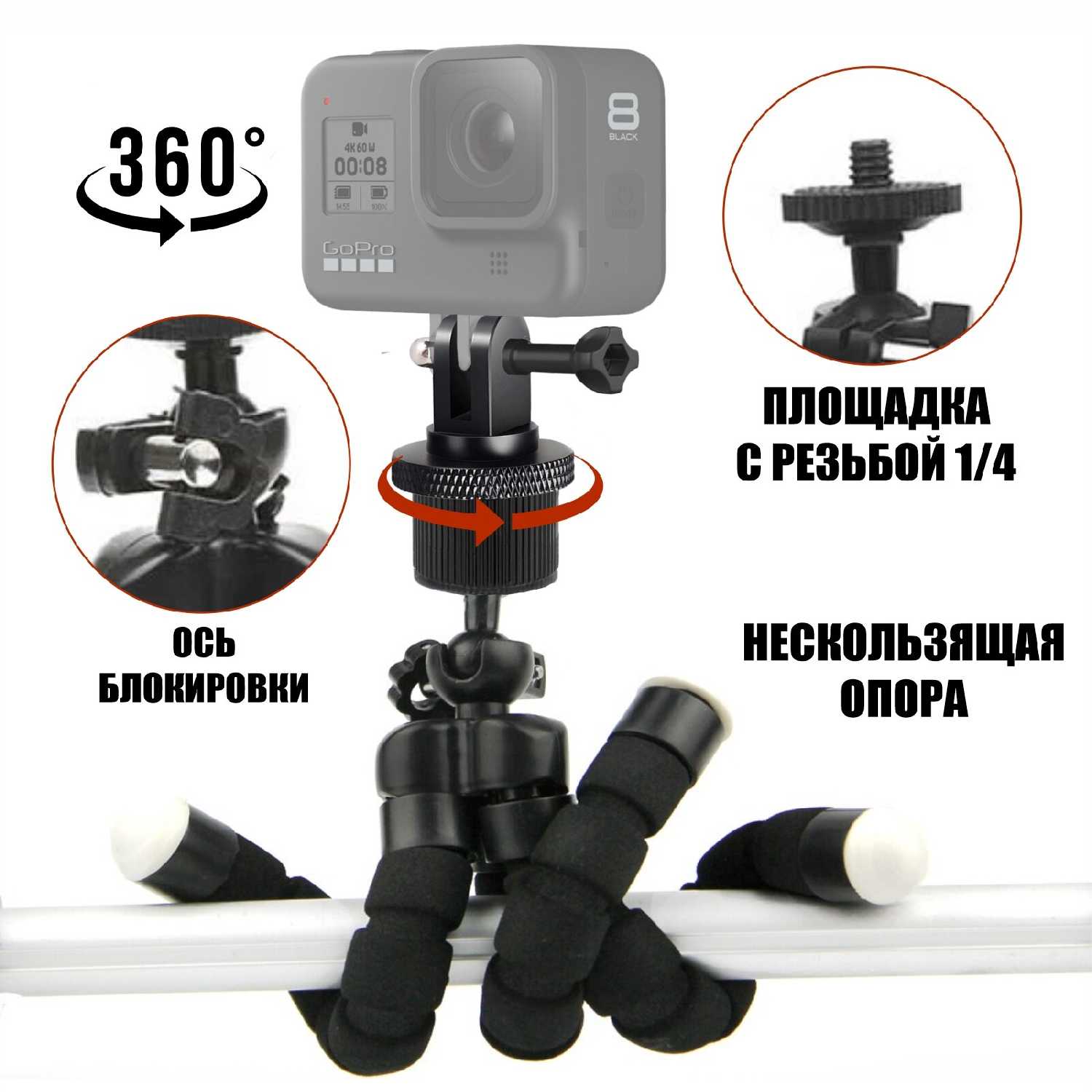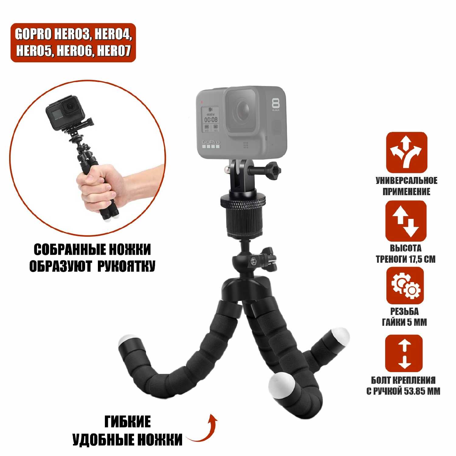 Дополнительная информация : | Данный держатель для гоу про и других экшен камер легко фиксируется на любой поверхности или предмете за счёт своих гибких ножек. Стойку можно использовать в качестве стабилизатора съемки, если Вам нужны статические кадры. |