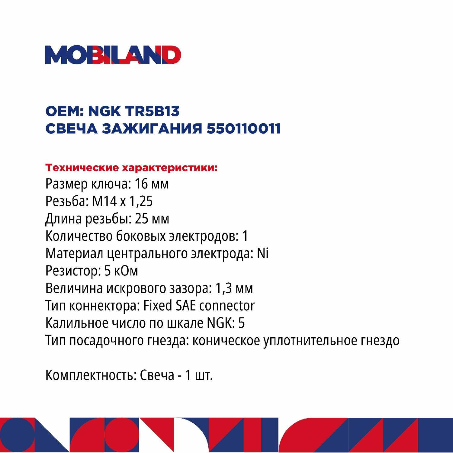 Характеристи MOBILAND Свеча зажигания (Ni)