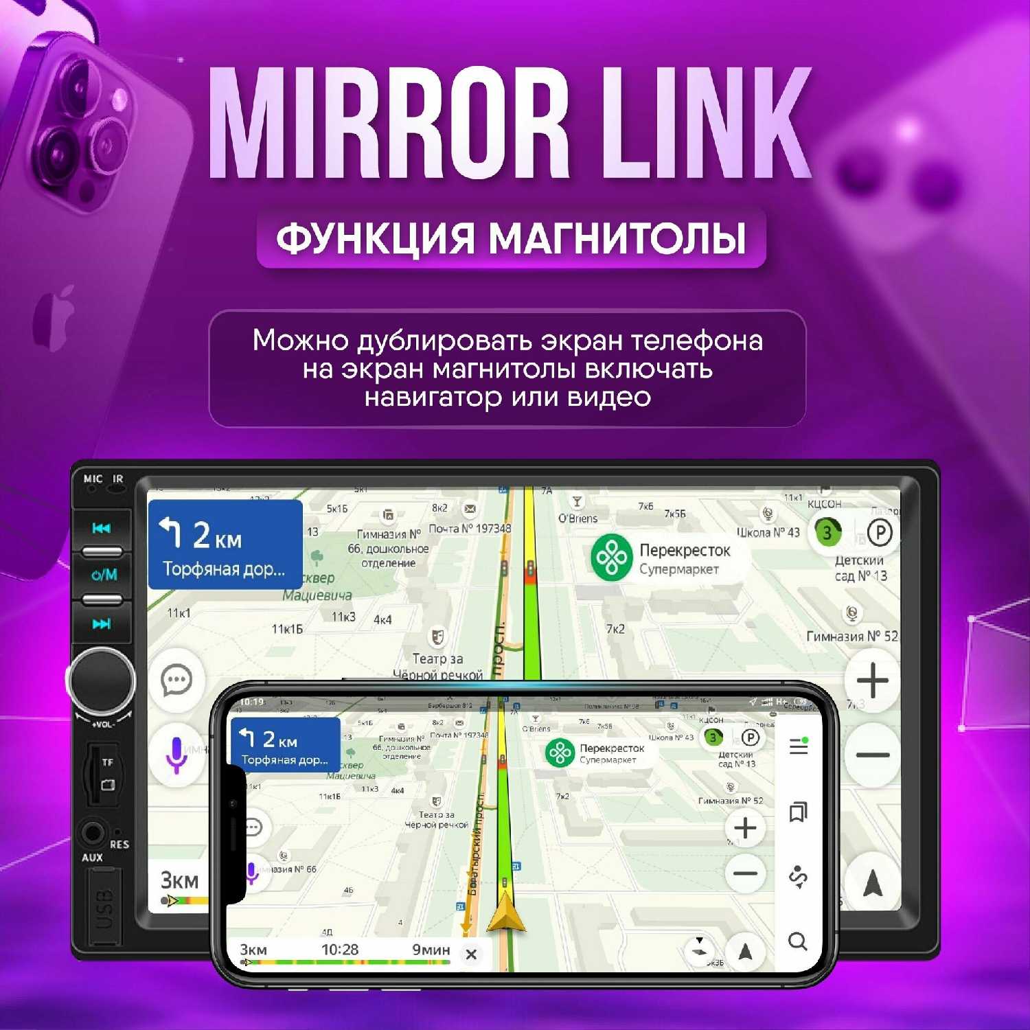 - Компактная конструкция облегчает замену обычной магнитолы.