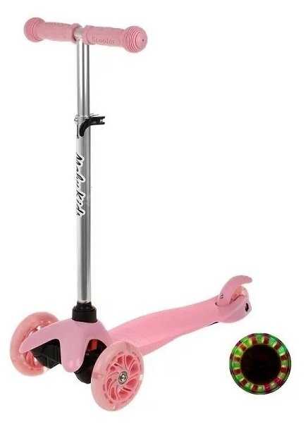 Характеристи Moby Kids Самокат трехколесный "MobyKids" "Basic2.0" 120 PU, со светом (розовый)