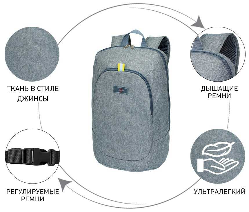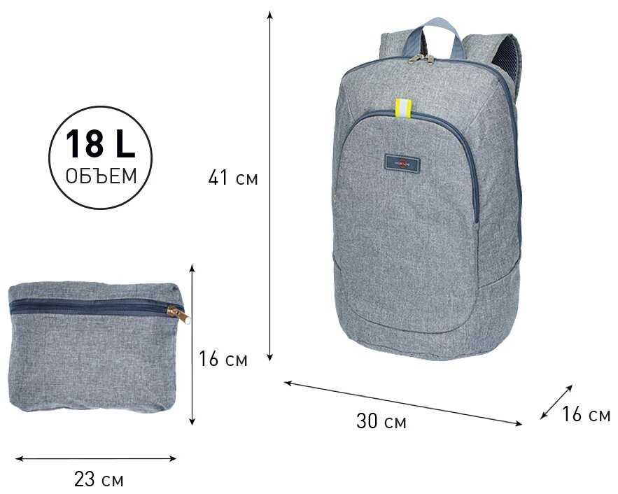 - + удобный небольшой тканевой рюкзачок городского типа. Если немного мелочей с собой - то, что нужно. Покупал для поездки на отдых, он хорошо себя зарекомендовал. естьтвнутренний кармашек на молнии, он же чехол для складывания. 2 заздельных отделения.