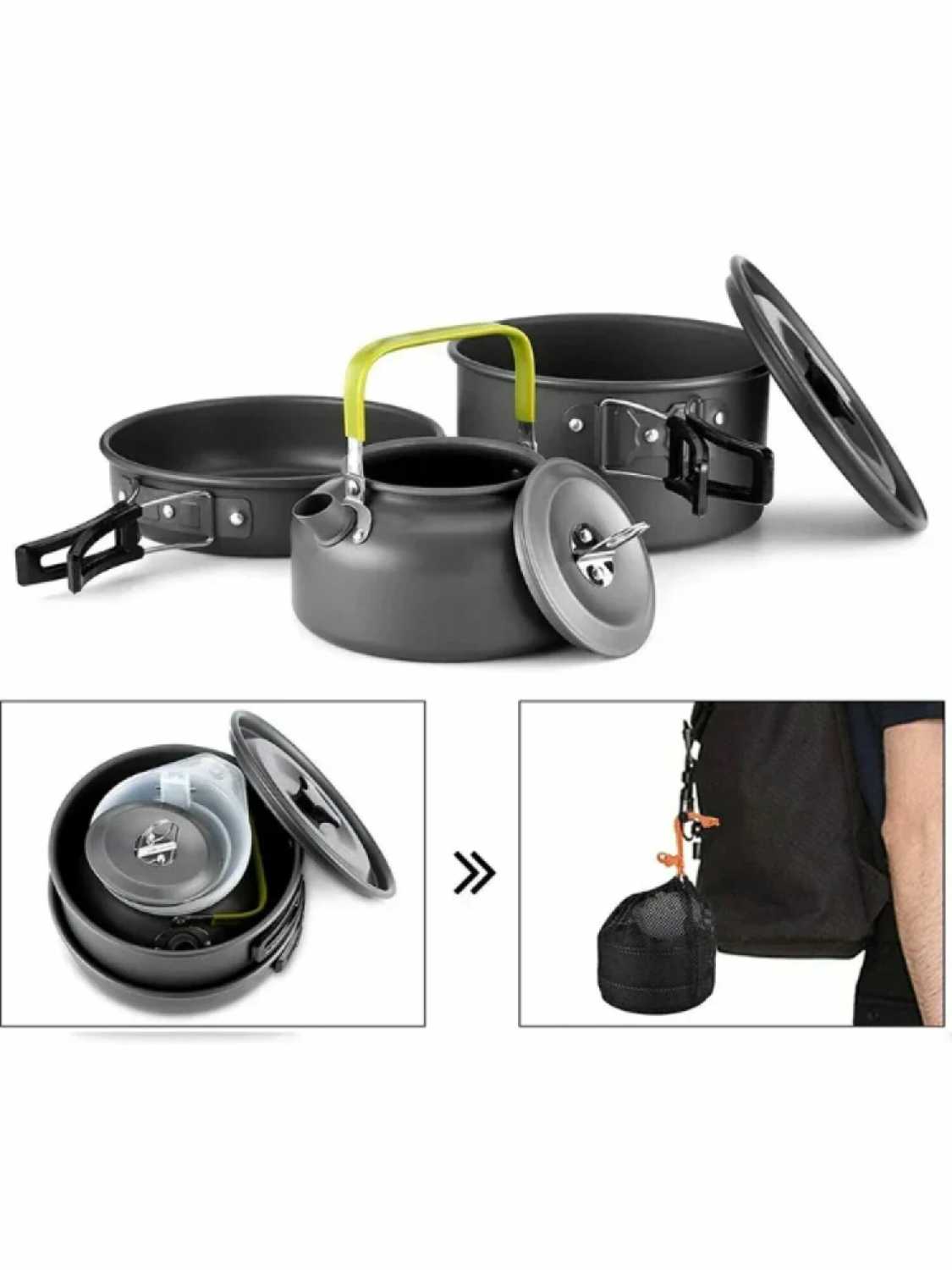 - + Супер набор, мне очень понравился. Очень компактный, объем посуды достаточно на 4 человек