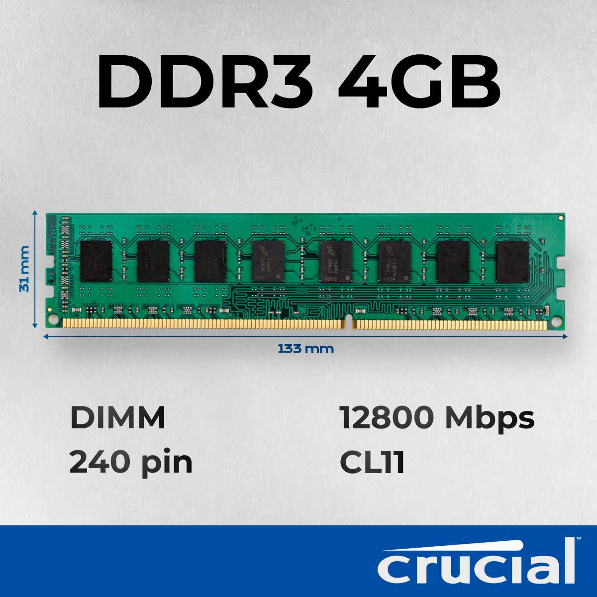 Crucial DDR3 4 ГБ 1600 MHz DIMM PC3-12800U 1x4 ГБ (CT102464BF160Bp.4G) для компьютера