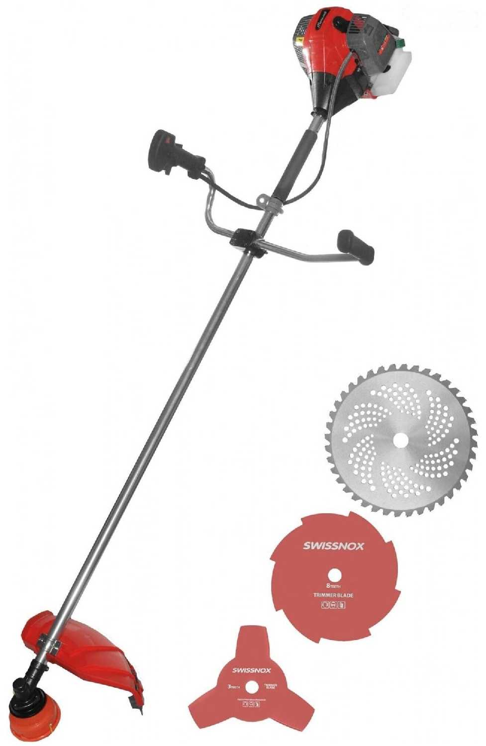 | Подробная комплектация : | лопастные ножи Swissnox (3Т, 8Т), диск c победитовыми напайками (40Т), триммерная головка (пластиковая), плечевой ремень с защитой ранцевый, набор инструментов в фирменной сумке, инструкция |