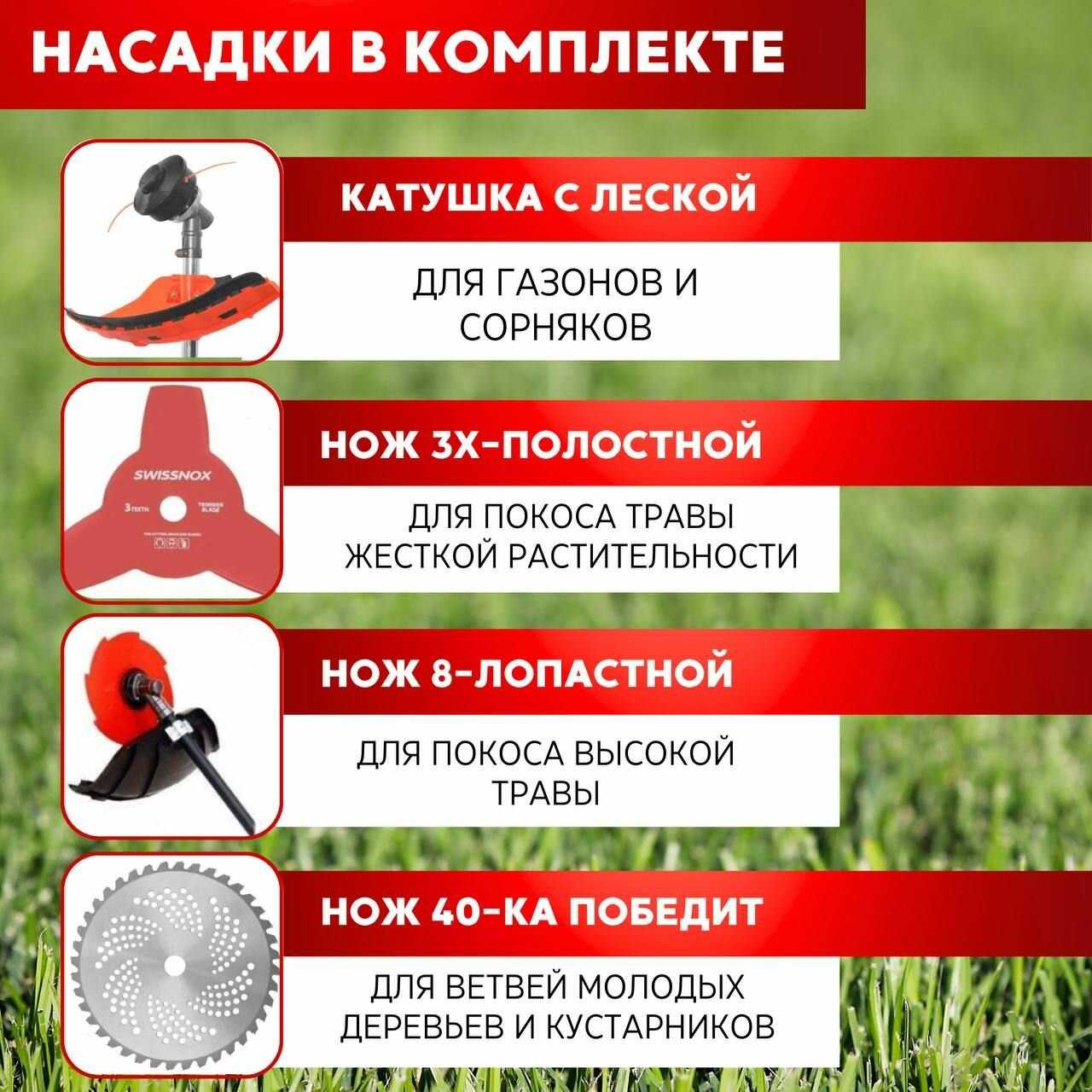 - Эффективная резка травы, кустов и молодой поросли: