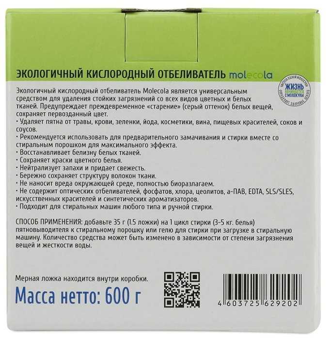 - + Хорошо отбеливает при замачивании в кипятке, экологичный, приятная цена