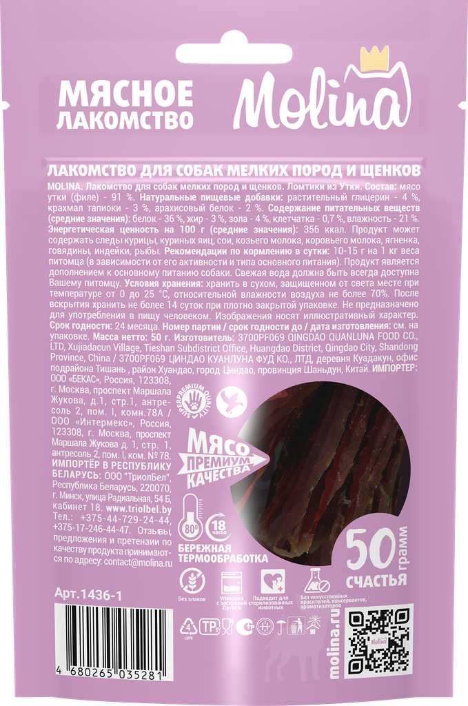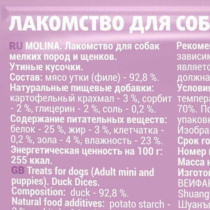 Отзывы о Лакомство для собак Molina Ломтики из утки