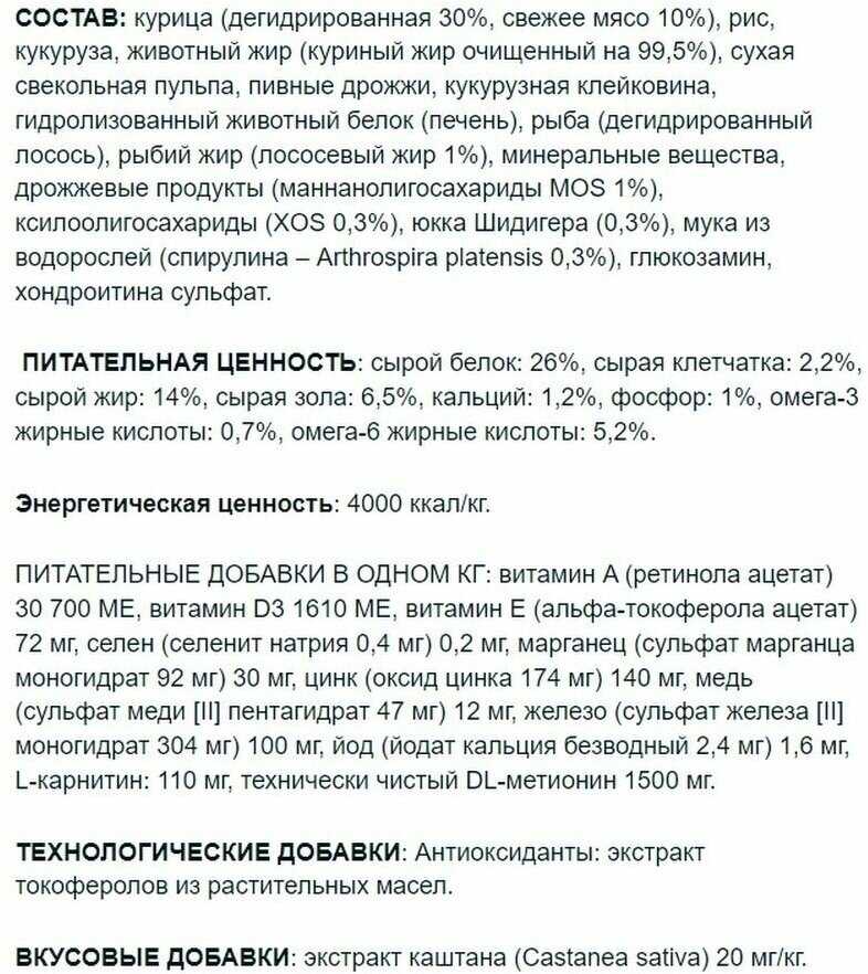 | Класс ингредиентов : | премиум, суперпремиум, холистик |