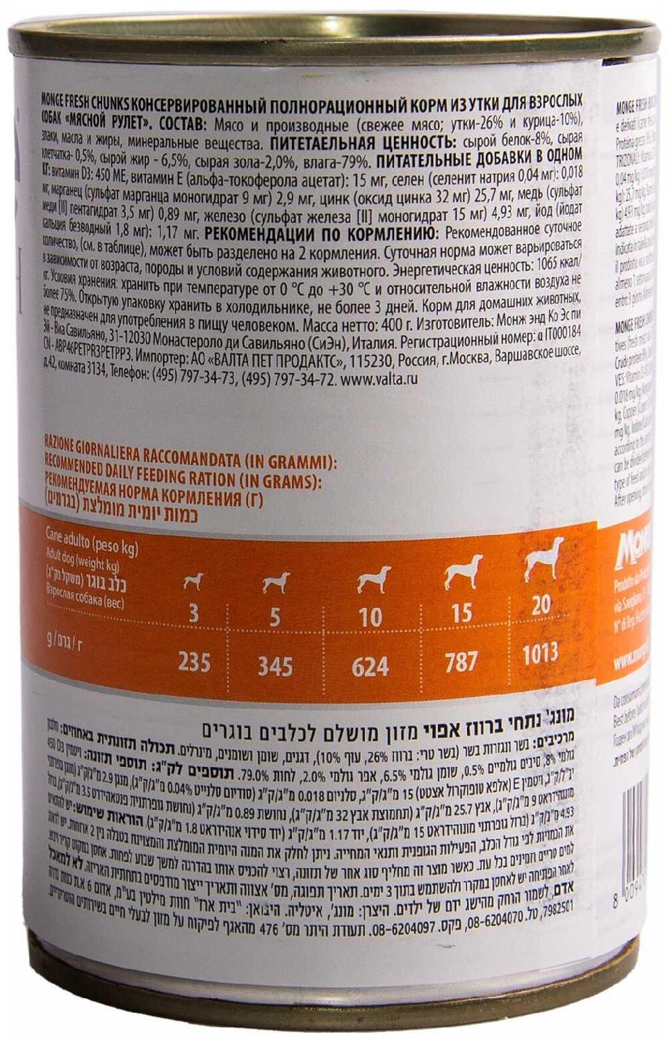 Лучшие цены сегодня на Monge Мясной рулет (утка)