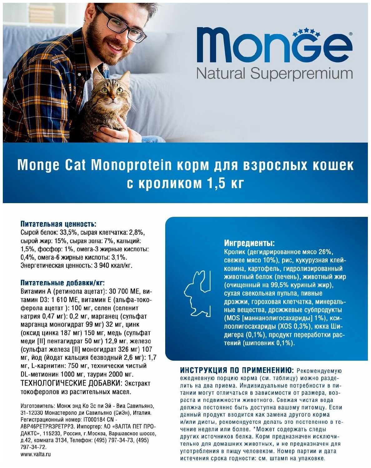 Отзывы о Корм для кошек Monge Natural Superpremium с кроликом