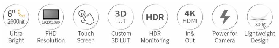 FEELWORLD LUT6 HDMI 2600nits HDR/3D LUT 4K Touch Screen