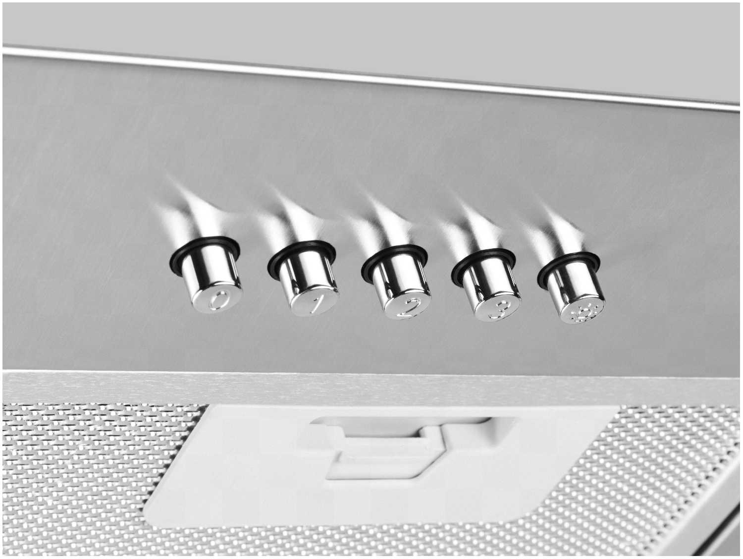 - Три скорости работы обеспечивают гибкость управления: на первой скорости устройство работает практически бесшумно (до 49,5 дБ), на третьей — демонстрирует «зверскую» тягу, быстро устраняя даже сильные запахи (например, при жарке рыбы или подгорании пищи).