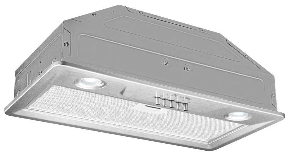 - Толщина корпуса — 1,5–2 см, что позволяет монтировать вытяжку в стандартные кухонные шкафы без выпирания.