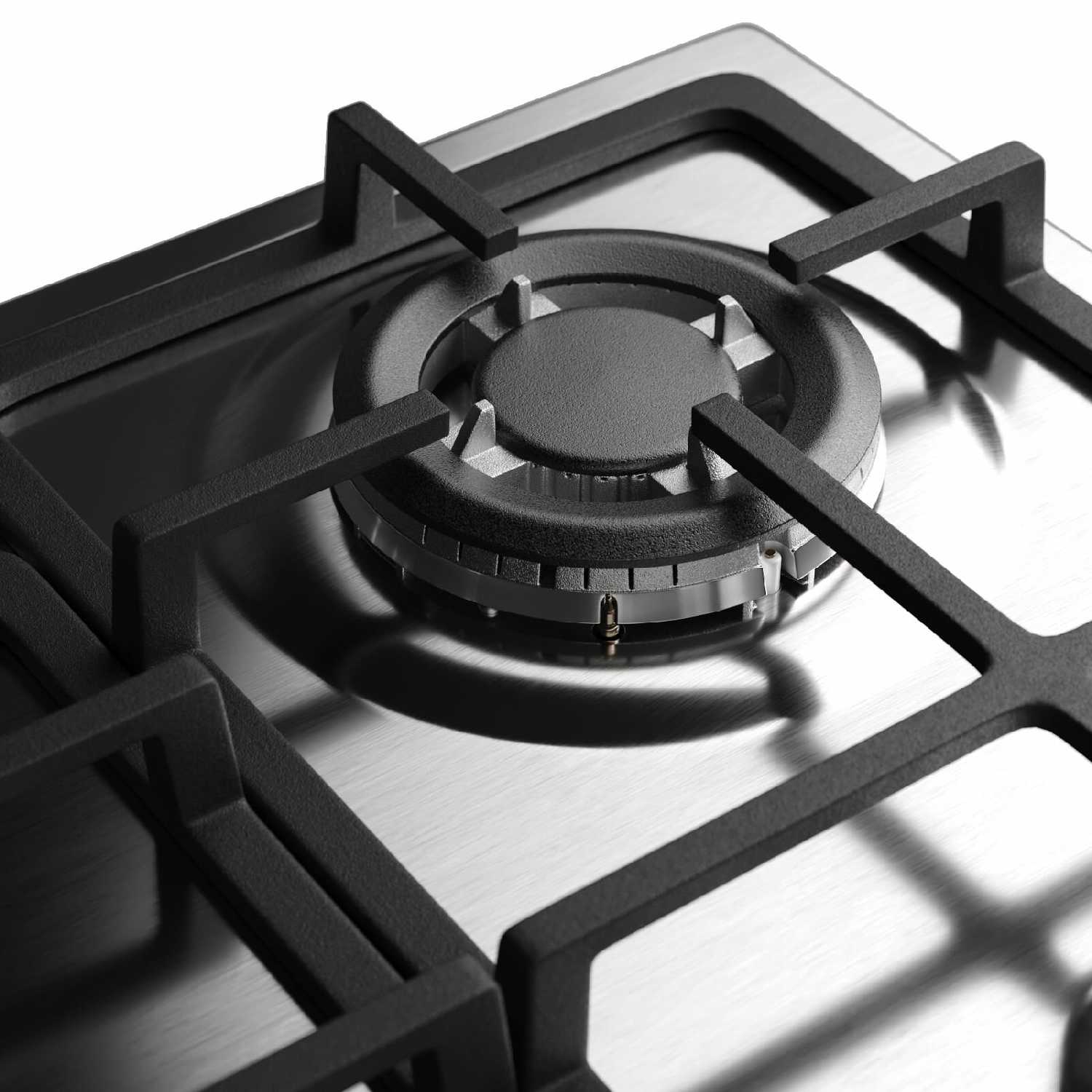 - Двойное пламя на основной конфорке повышает мощность для быстрого кипения, улучшая производительность при готовке для большой семьи.