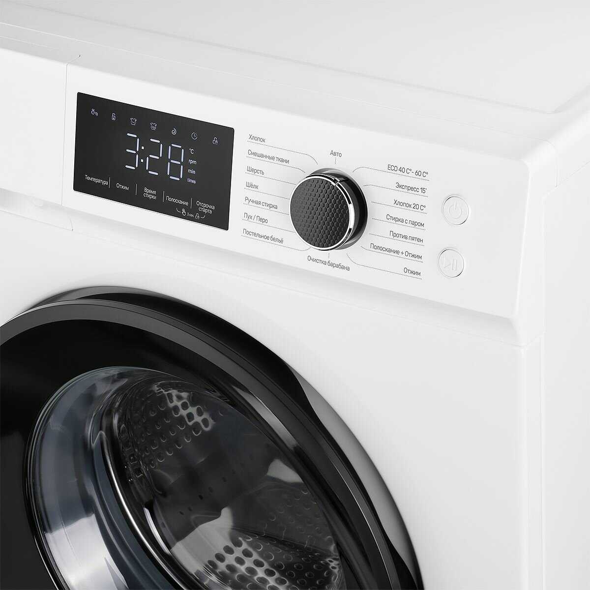 - + Машинка работает без нареканий, дизайн красивый, много режимов стирки.