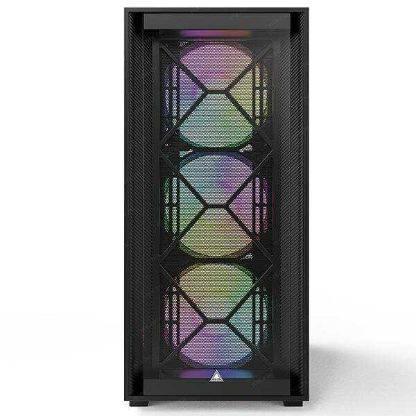 - Комплектуется стеклянной и сетчатой (Mesh) панелями, что позволяет выбирать между эстетикой и максимальным охлаждением.