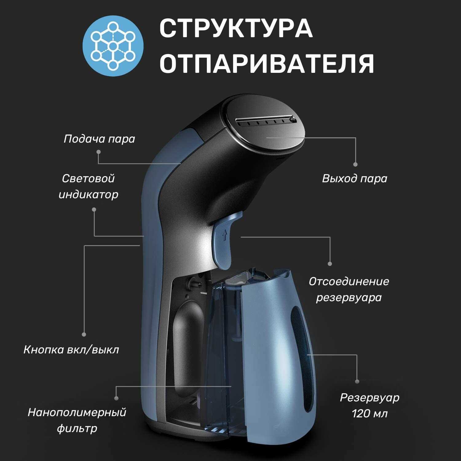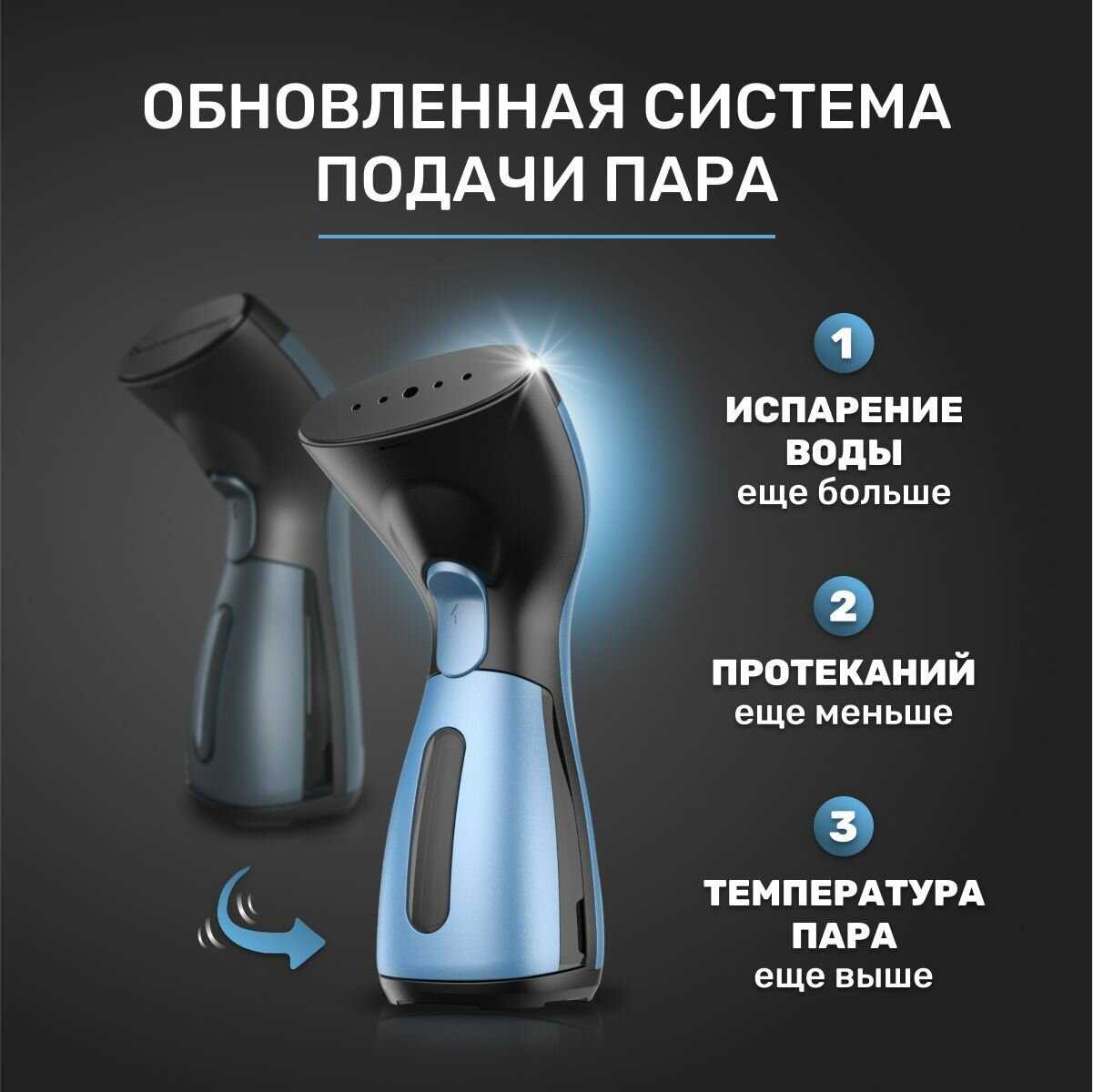 Хорошо убирает помятость вещи. Как раз искала небольшой, компактный и мощный для своих размеров. У кого был большой отпариватель, меня поймут. Занимал место в комнате. А этот - в самый раз. Отпариватель удобно держать в руке. Можно взять с собой в дорогу. Он быстро нагревается. И можно гладить под углом. Плюс производитель заявляет, что вода фильтруется через внутренний фильтр и не должно быть проблем с накипью. В большом отпаривателе с этим были постоянные проблемы. После решения небольшой проблемы, могу сказать продавец - надёжный. Была замена аппарата. В целом, рекомендую! - - Попался бракованный. Внутри корпуса что то гремит, как погремушка при переворачивании корпуса вверх-вниз. Возможно, что то отлетело, не закрепили. Обещали заменить. Заменили. ПС: Но не смотря на это обстоятельство, отпаривателем очень довольна.. //