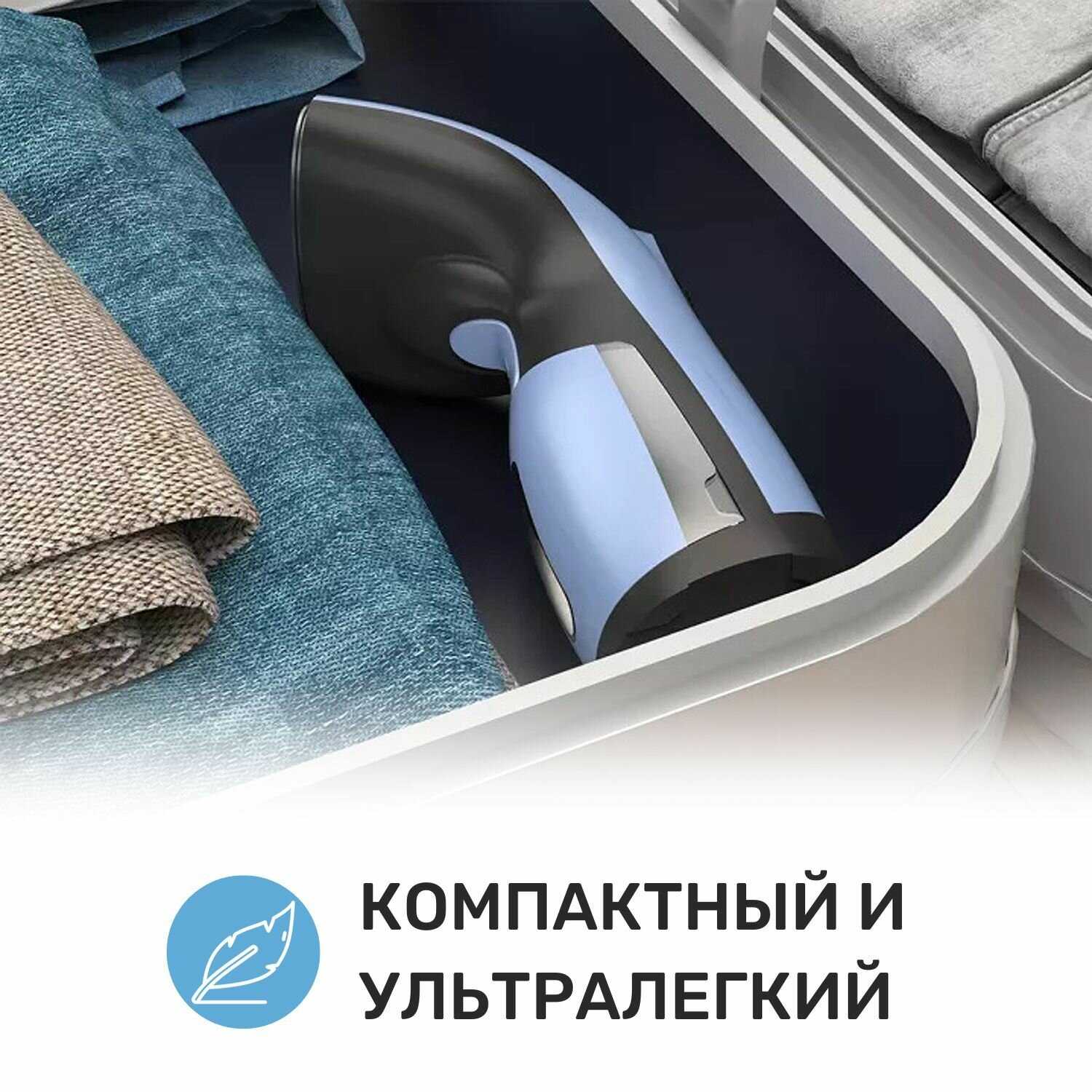 - + Идеален, чтобы отпарить блузку или пару футболок или брюки. Особенно, когда нужно быстро привести вещь в порядок перед выходом.