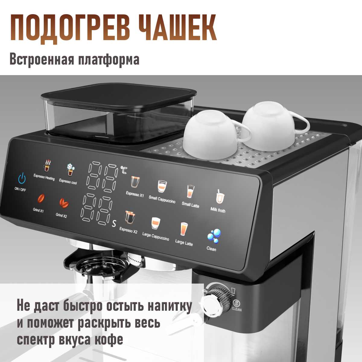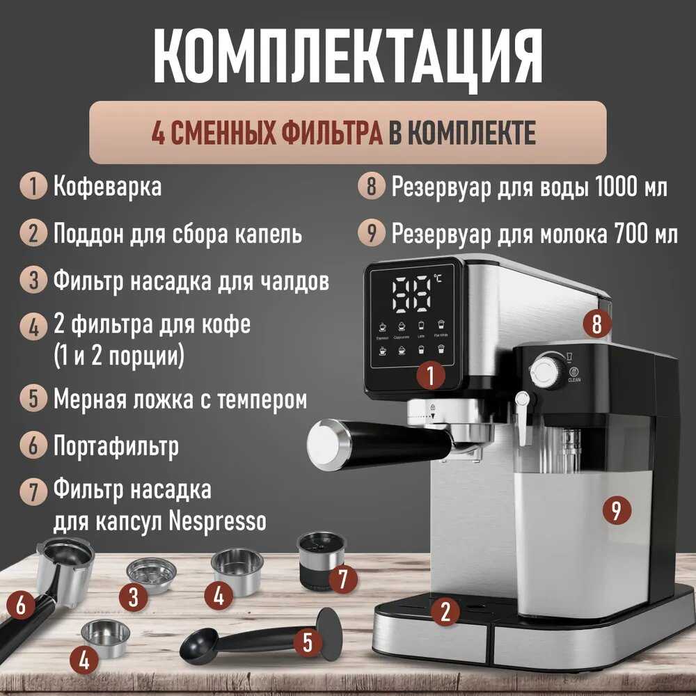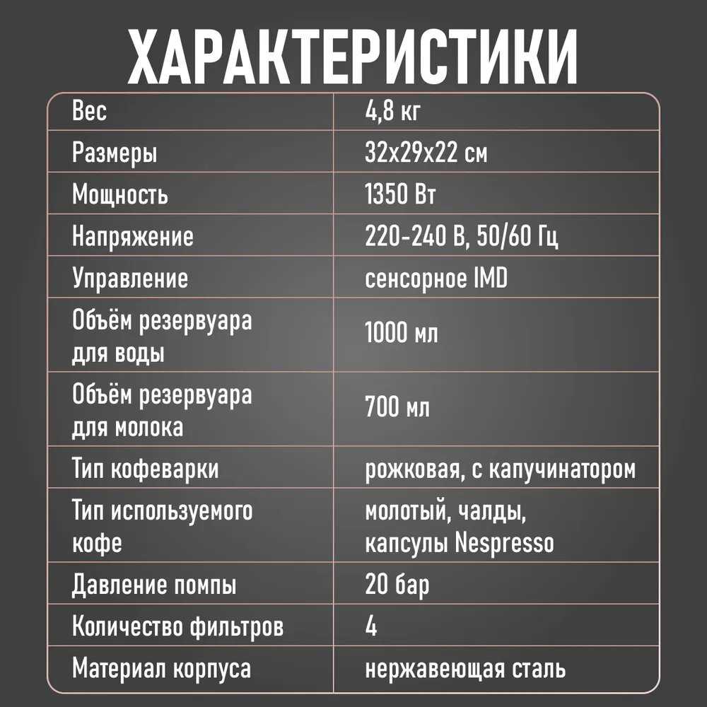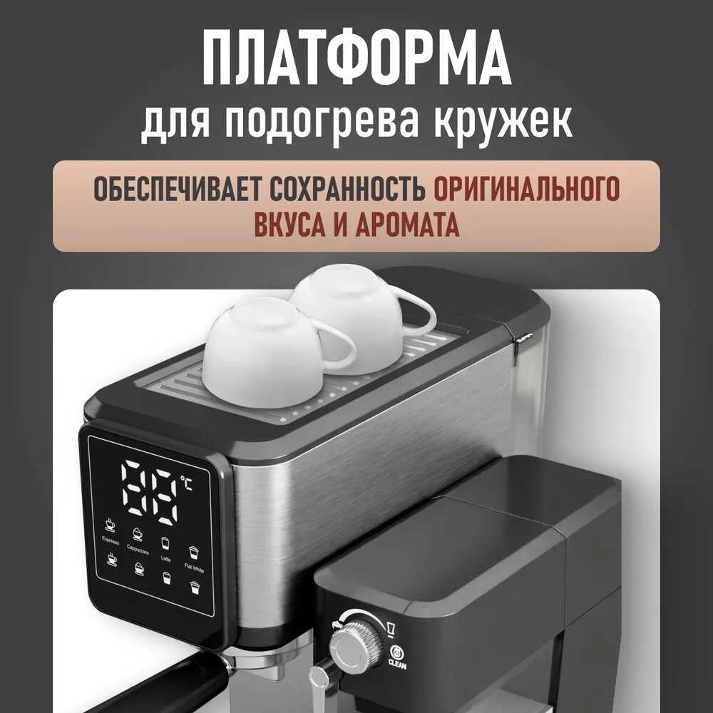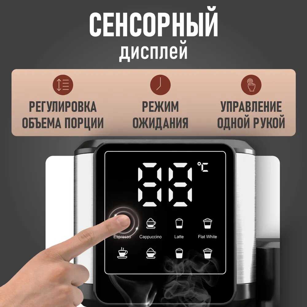 - Интуитивная панель управления с понятными режимами (эспрессо, американо, капучино).