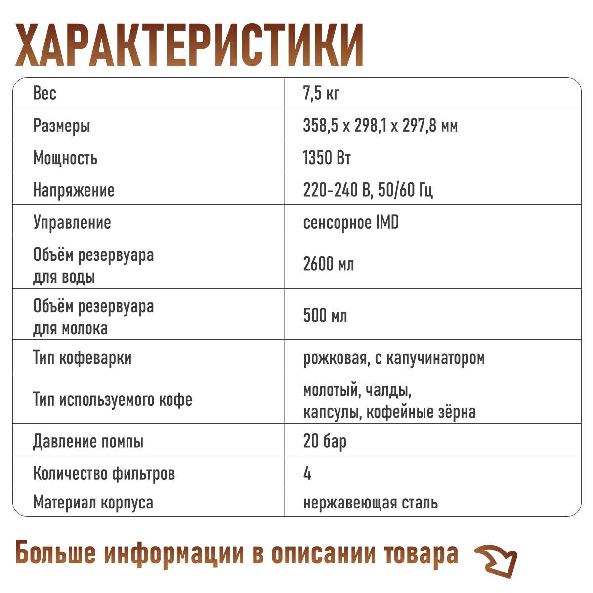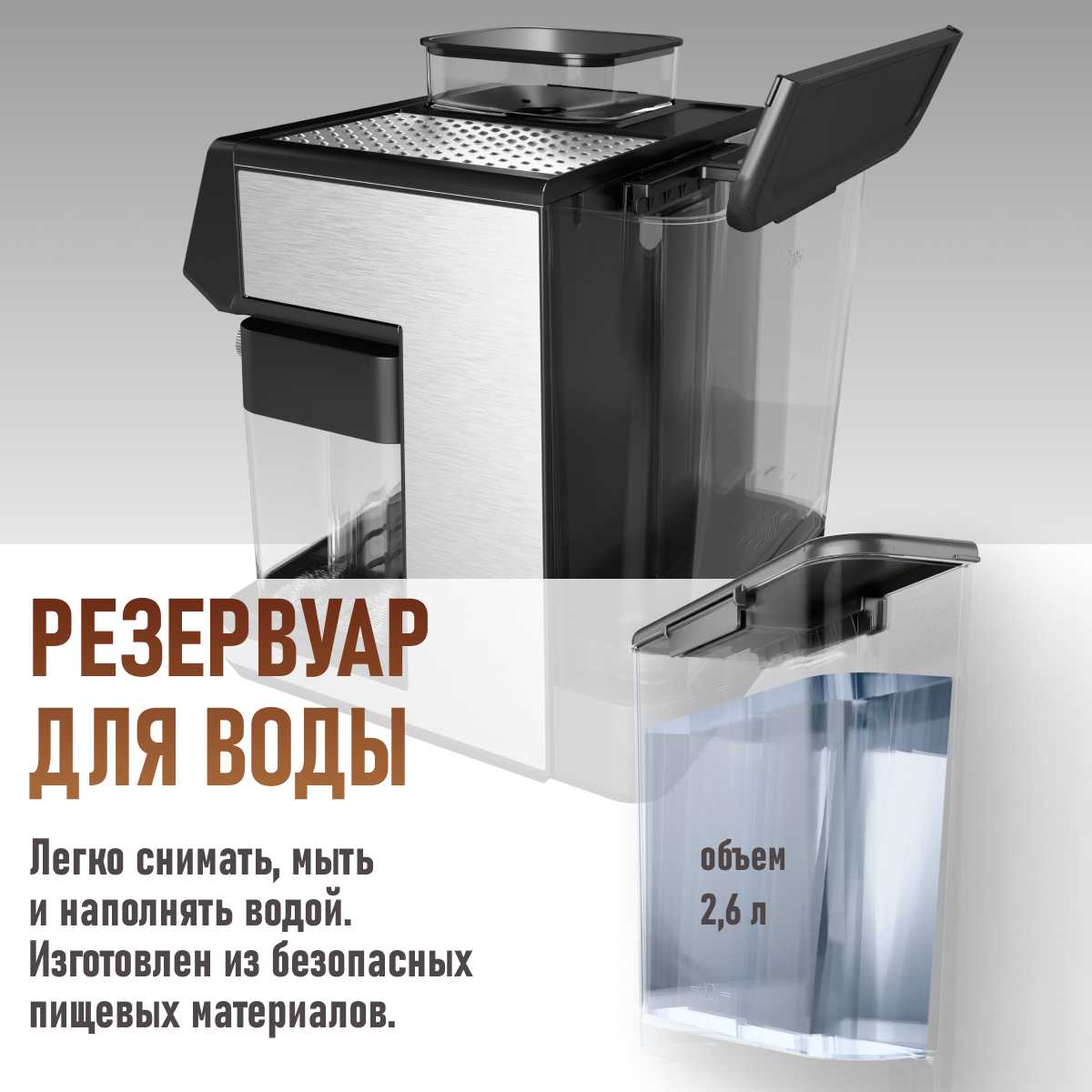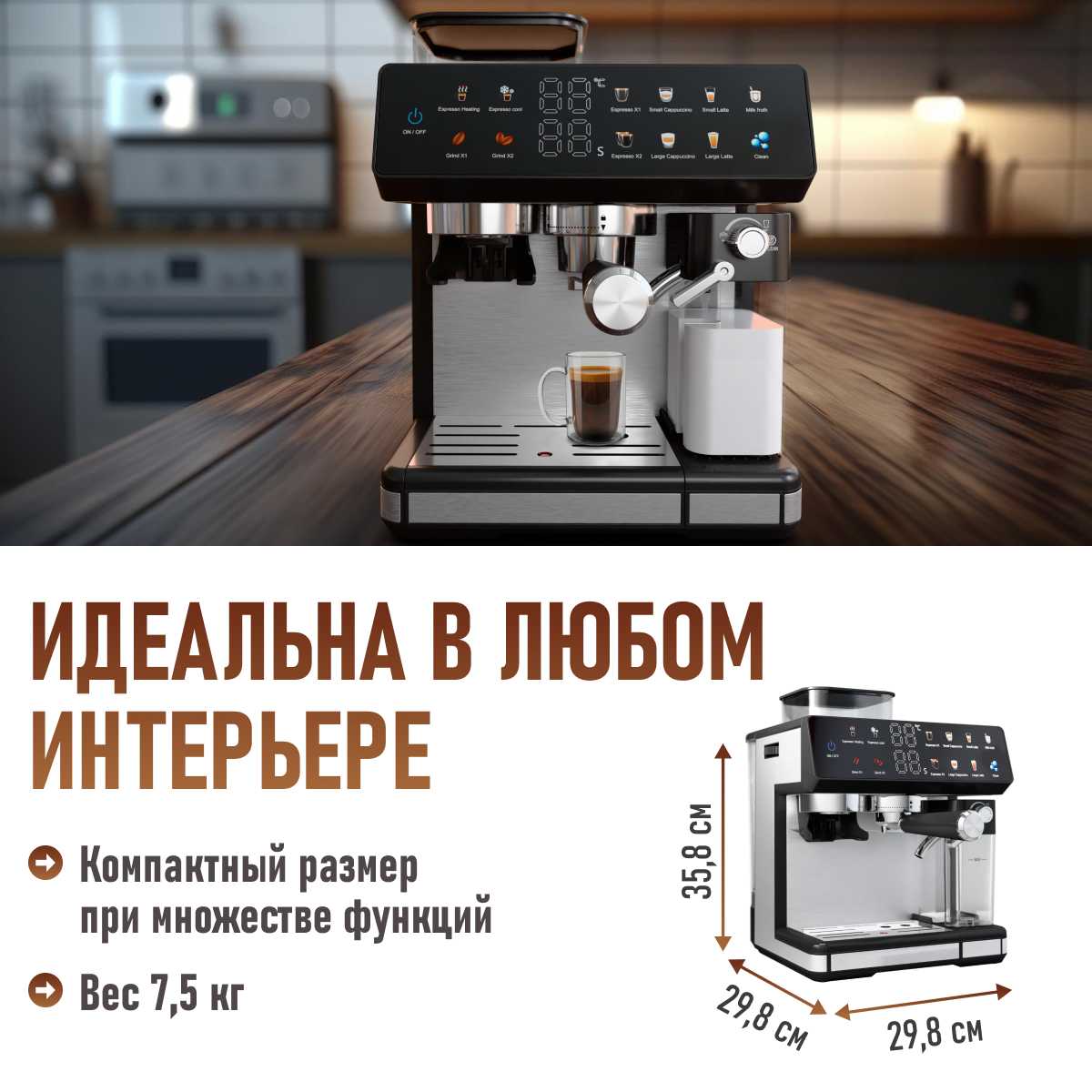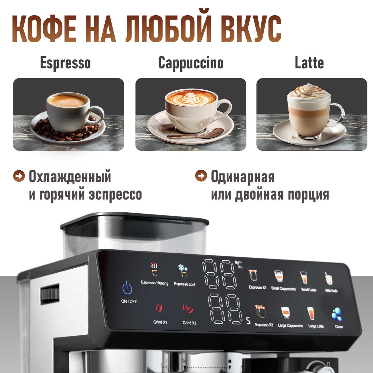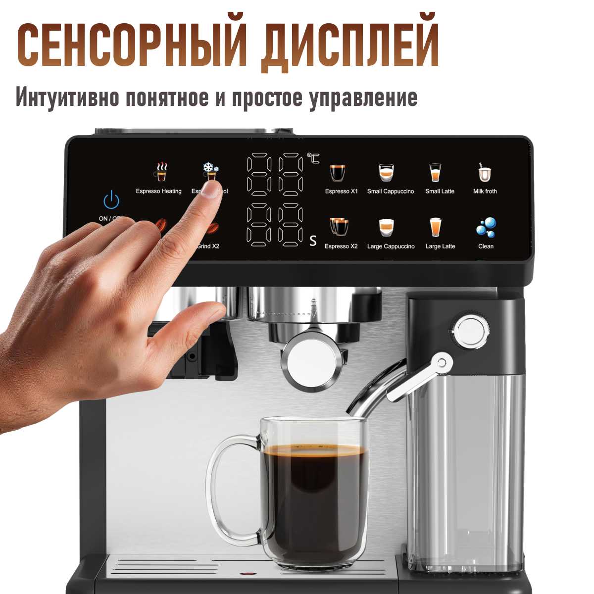 - Интуитивная панель управления с понятными режимами (эспрессо, американо, капучино).