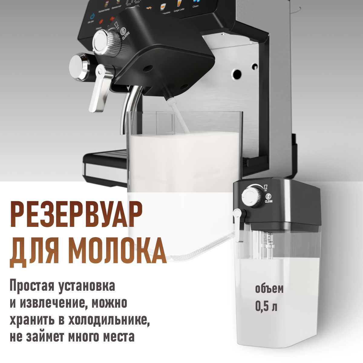 Удобно чистить молочную систему.