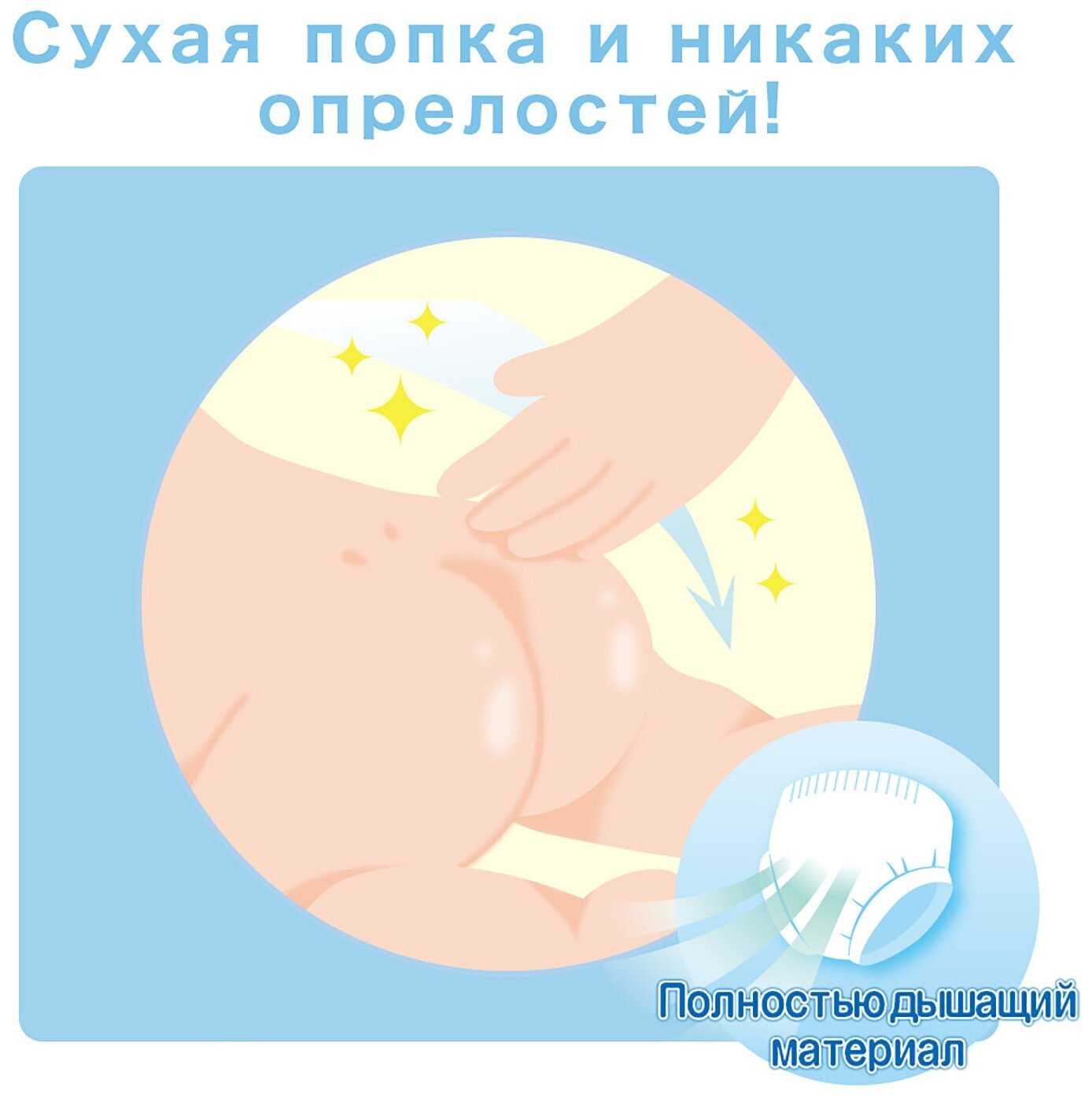 - В маленьких размерах есть вырез для пупка и зона для жидкого стула, что делает их безопасными и удобными для первых месяцев.