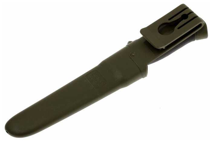 Ножны — пример удачного компромисса между простотой и функциональностью. Клипса надежно крепится на ремне, а плотная посадка ножа исключает выпадение при беге или лазании по склонам. Однако левшам придется смириться с необходимостью переворачивать нож при извлечении или мириться с неудобным хватом. Также со временем пластик клипсы теряет упругость, что требует самостоятельного ремонта (нагревание для восстановления формы, установка резиновых вставок).