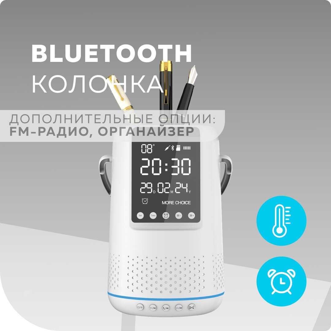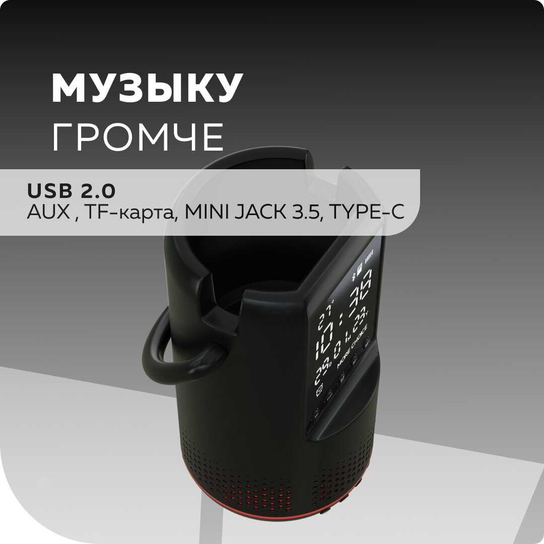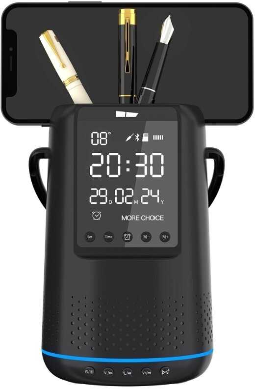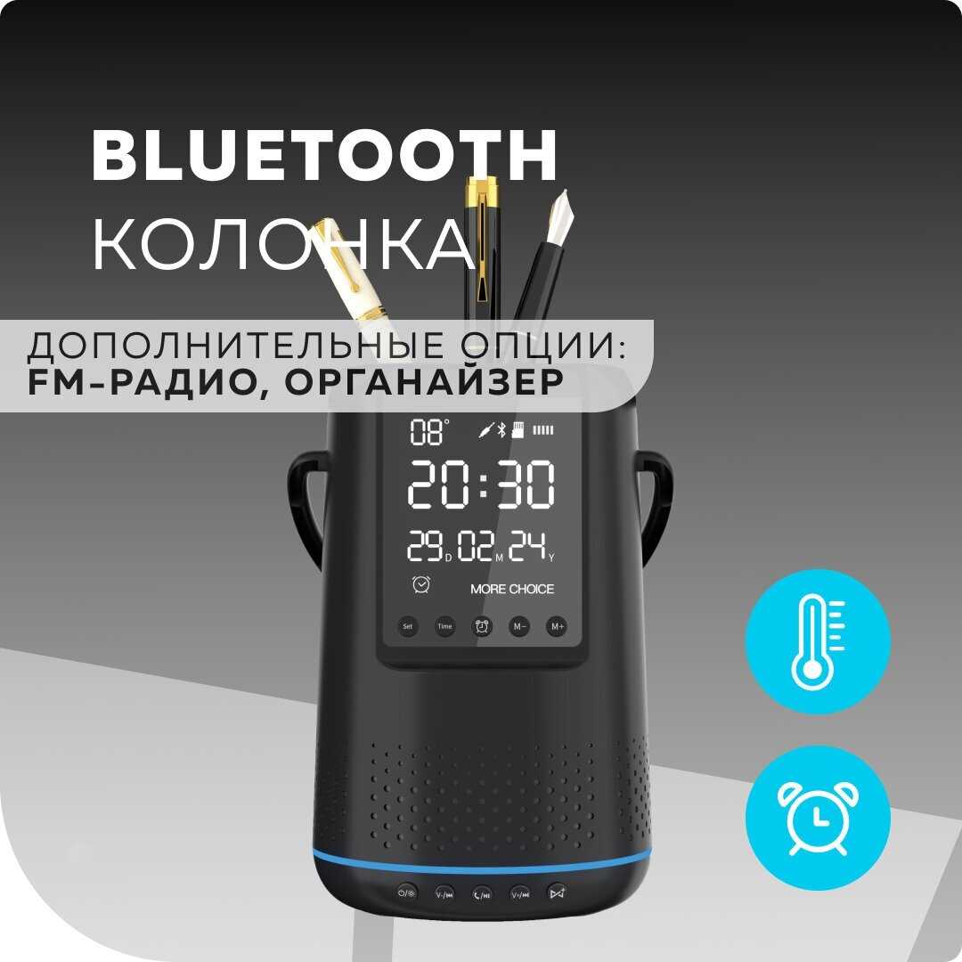 - + Выглядит прикольно, впишется в любой интерьер. Можно использовать как органайзер для для канцелярии. Блютуз ловит на метров 10 без препятствий. Поет достаточно громко
