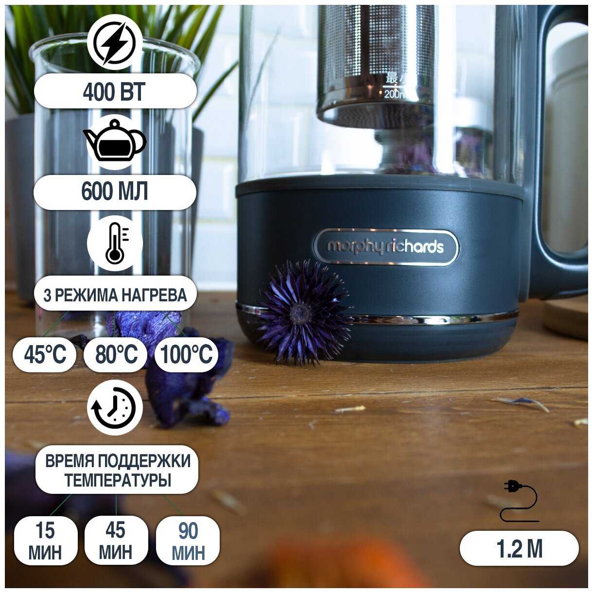 Обзор Morphy Richards Чайник электрический заварочный фито с выбором температуры - мнение пользователей*: