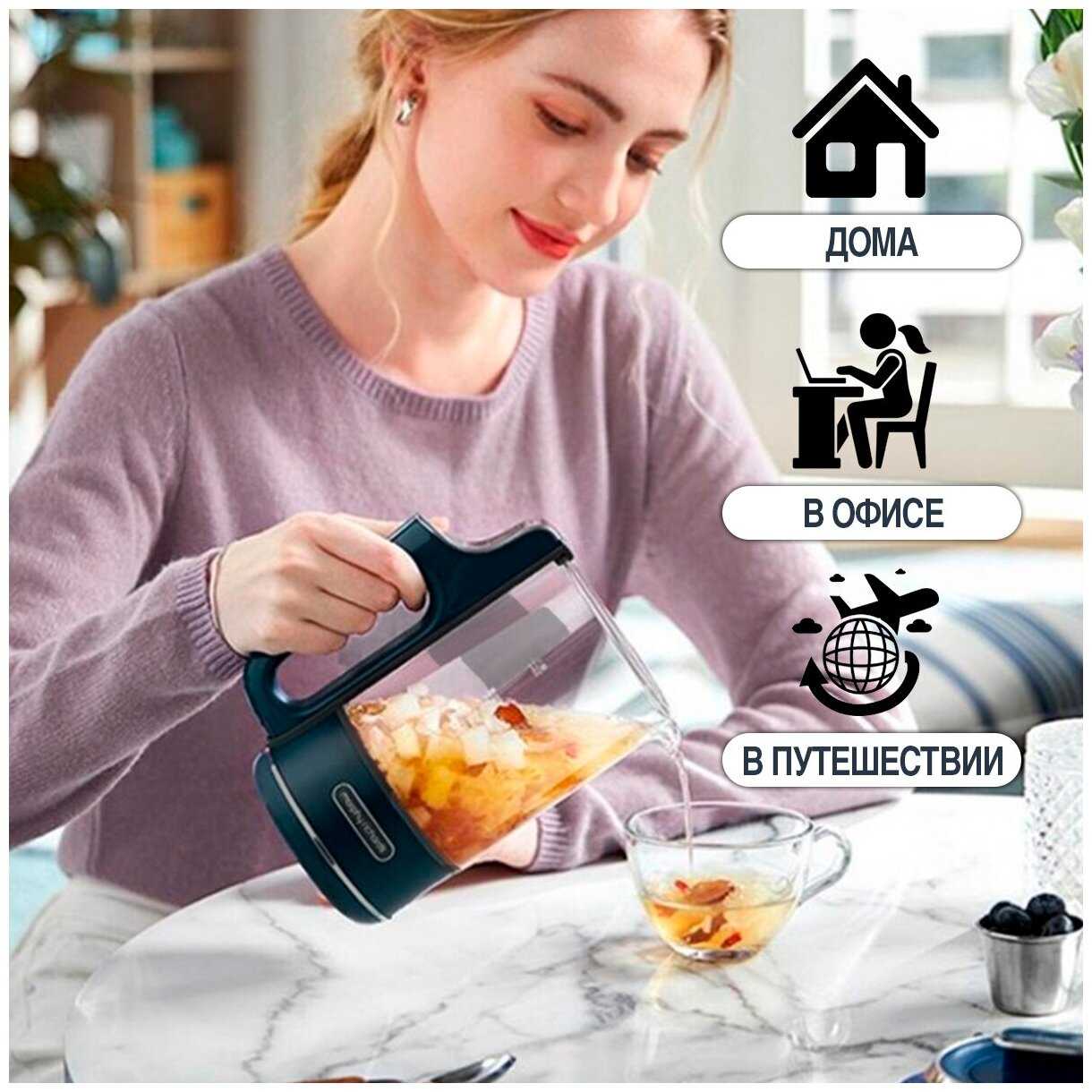 Нет, из-за малого объёма и медленного нагрева он не заменяет стандартный электрочайник. Это идеальный дополнительный прибор для ценителей чая, тех, кто готовит авторские напитки, или для использования в офисе/путешествиях, где важны компактность и многофункциональность.