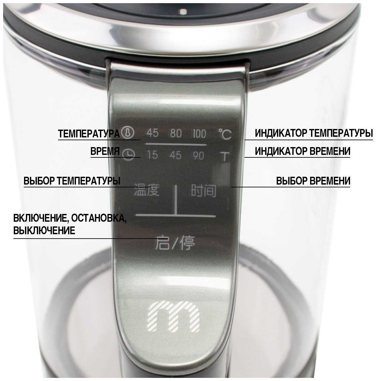- Позволяет заваривать травяные/фруктовые чаи, готовить компоты, глинтвейн и даже молочные каши благодаря точному контролю температуры (режимы 45°C, 80°C, 100°C).