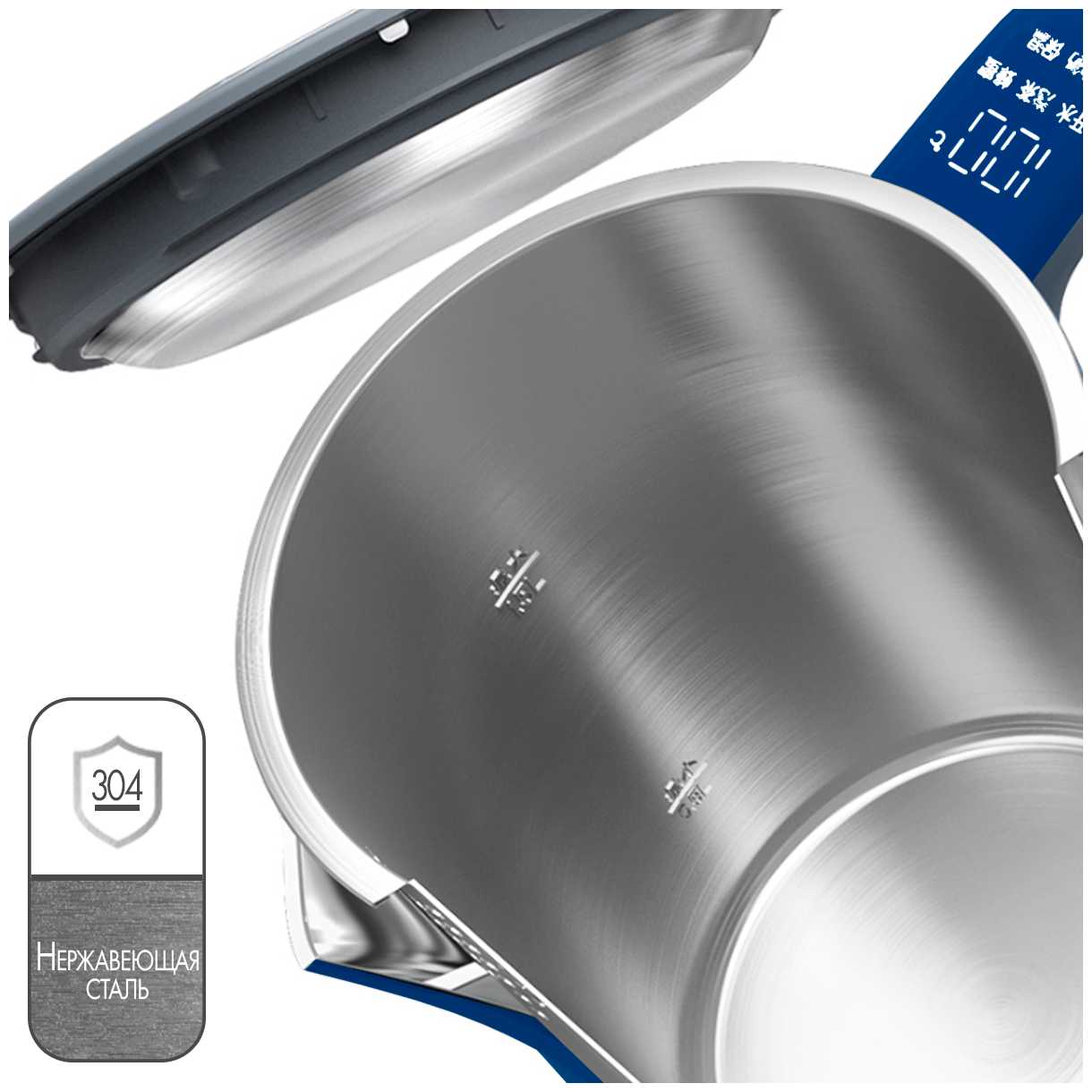 - Двойные стенки из нержавеющей стали и внешнее покрытие предотвращают нагрев корпуса даже при кипячении, что исключает риск ожогов.
