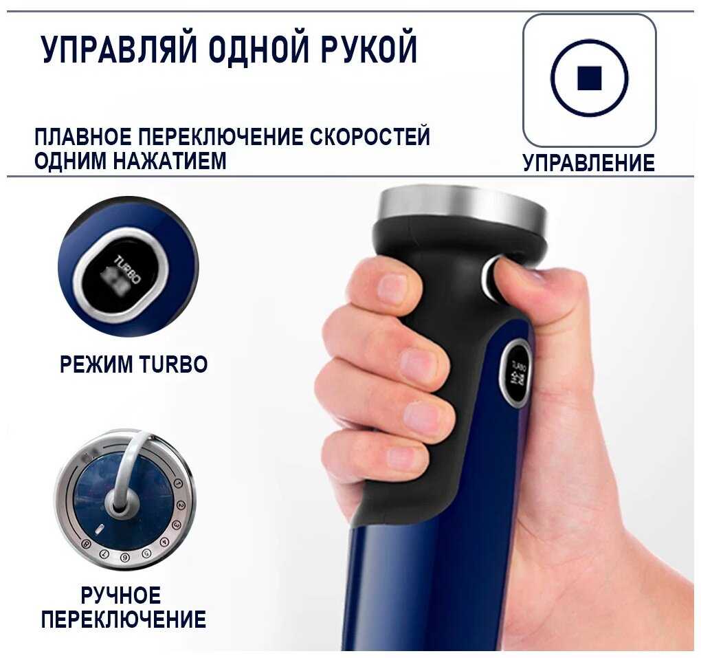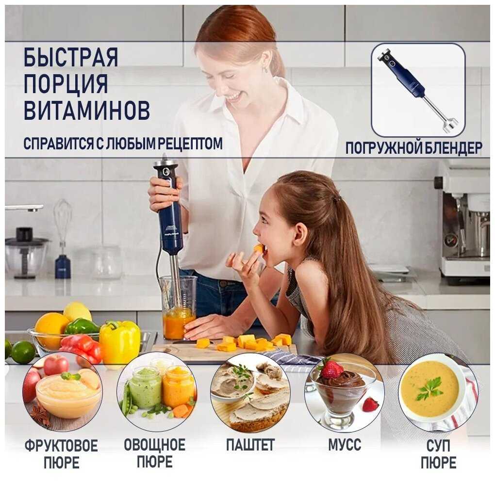 - Регулировка скоростей (8 режимов + турбо) позволяет точно контролировать степень измельчения — от кусочков до однородного пюре.