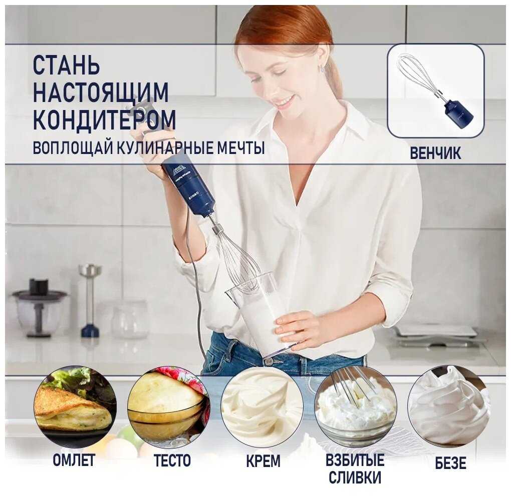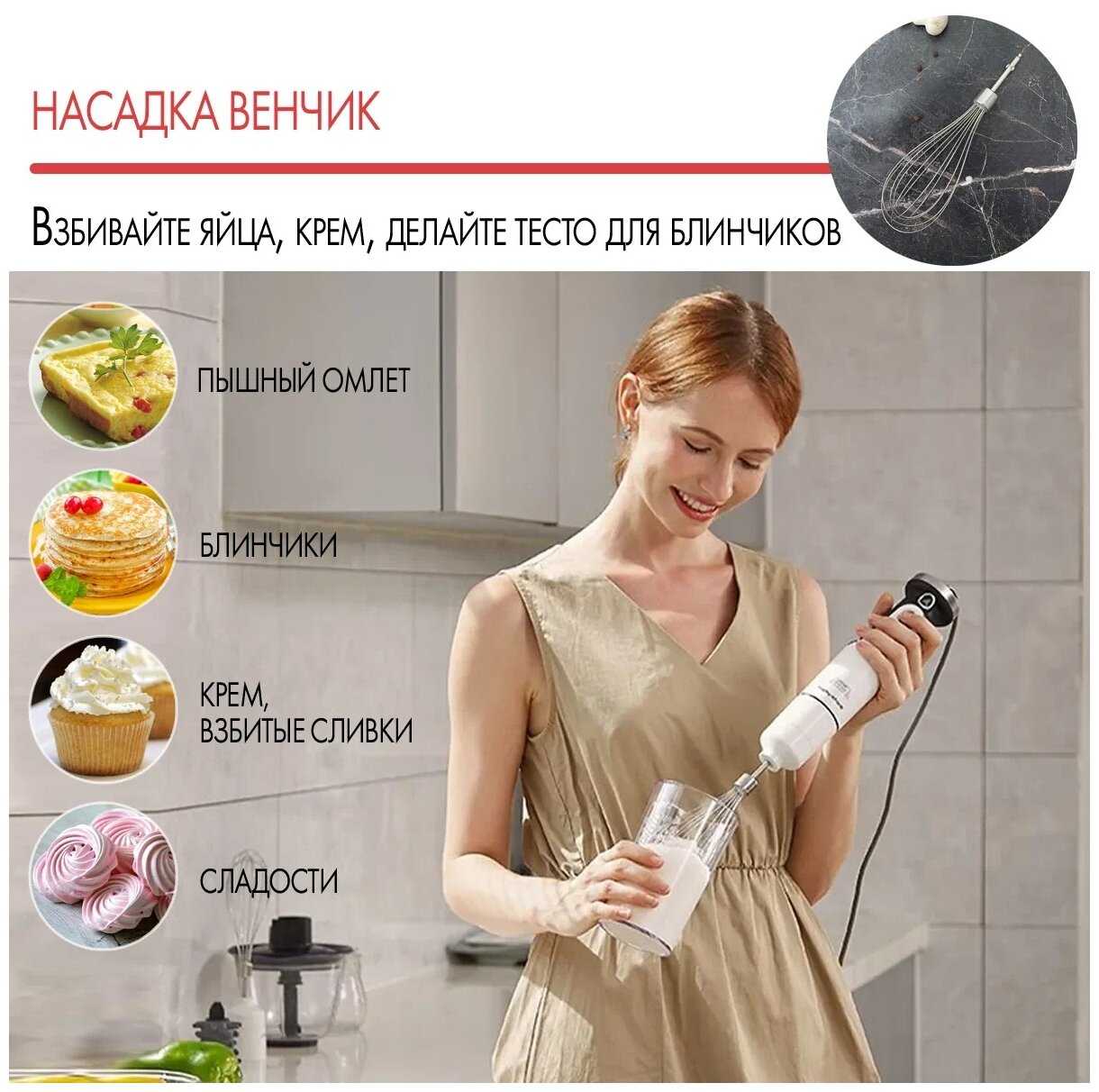 Насадки : | венчик для взбивания, для приготовления пюре, измельчитель |
