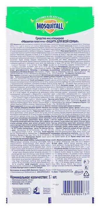 | Подробная комплектация : | Mosquitall Пластины Защита для всей семьи от комаров, 10+2 шт - 3 уп |