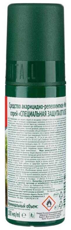 - + Рабочий состав, неплох как дополнение к стандартным мерам предосторожности от клещей. Удобен в нанесении.